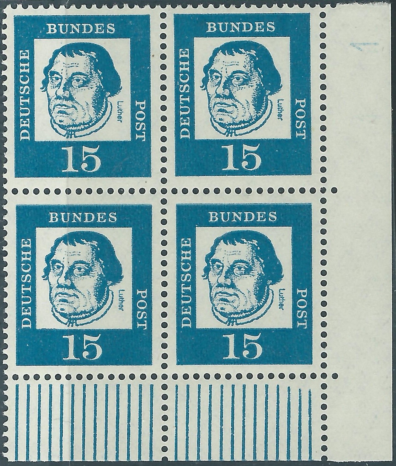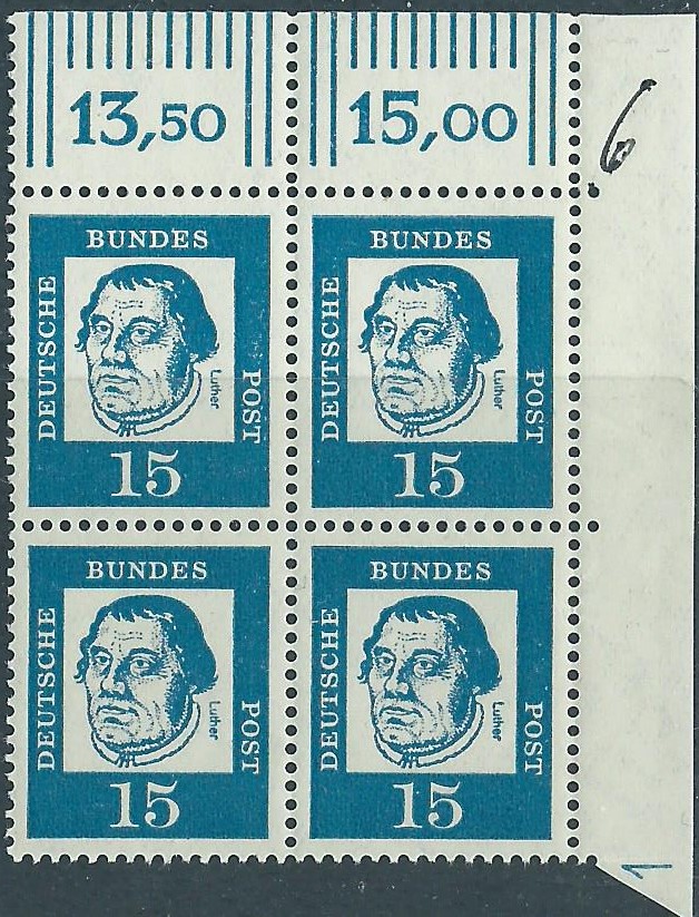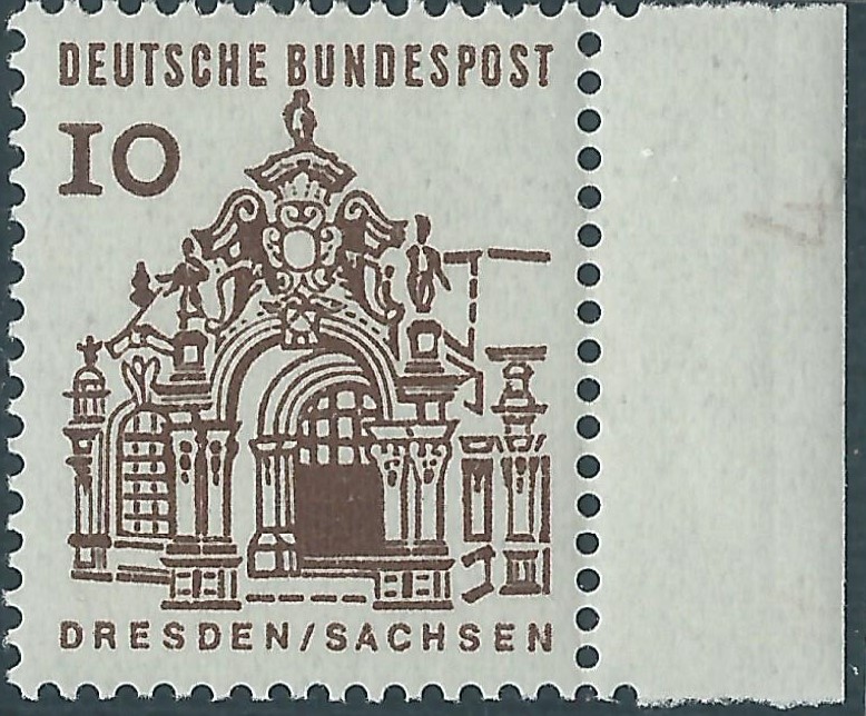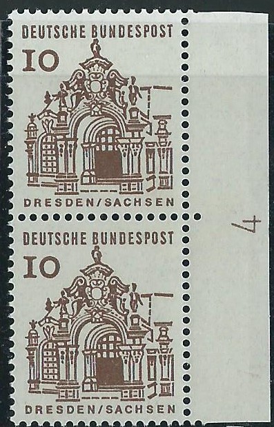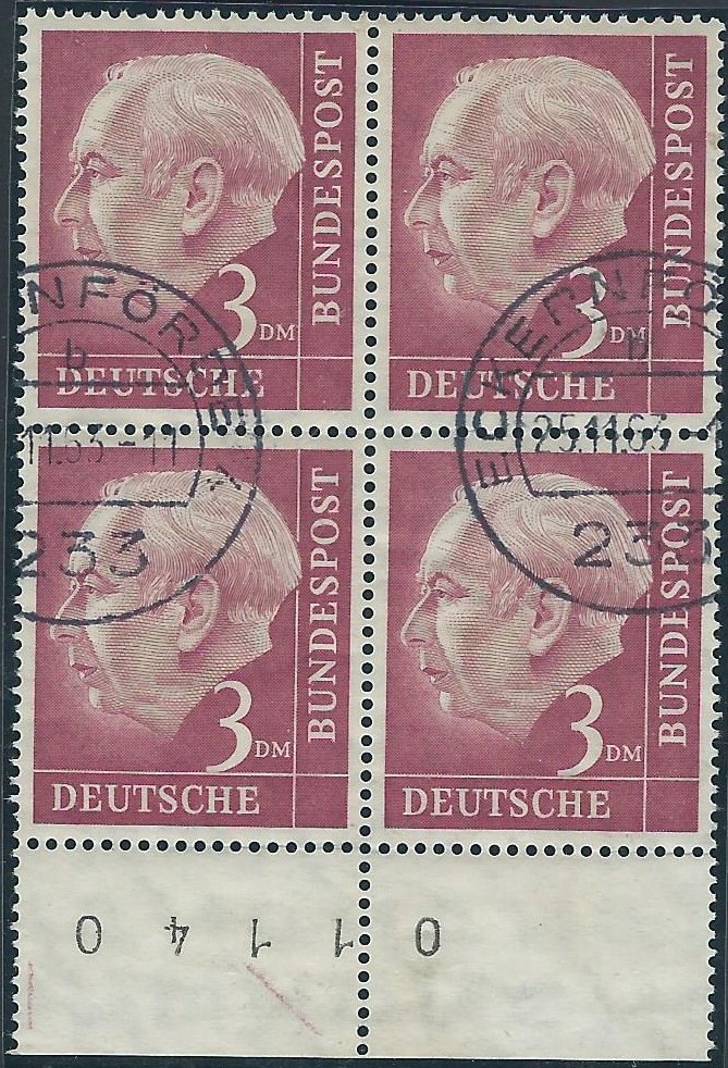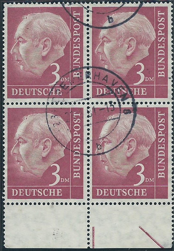 Auch von anderen Bogenrandzudrucken gibt es Abklatsche. Da ist zum einen der Steuerstrich. Der ist auch immer in Markenfarbe gehalten. Ein besonders gutes Beispiel kann ich an Hand der Heuss I 3 DM-Marke zeigen.
