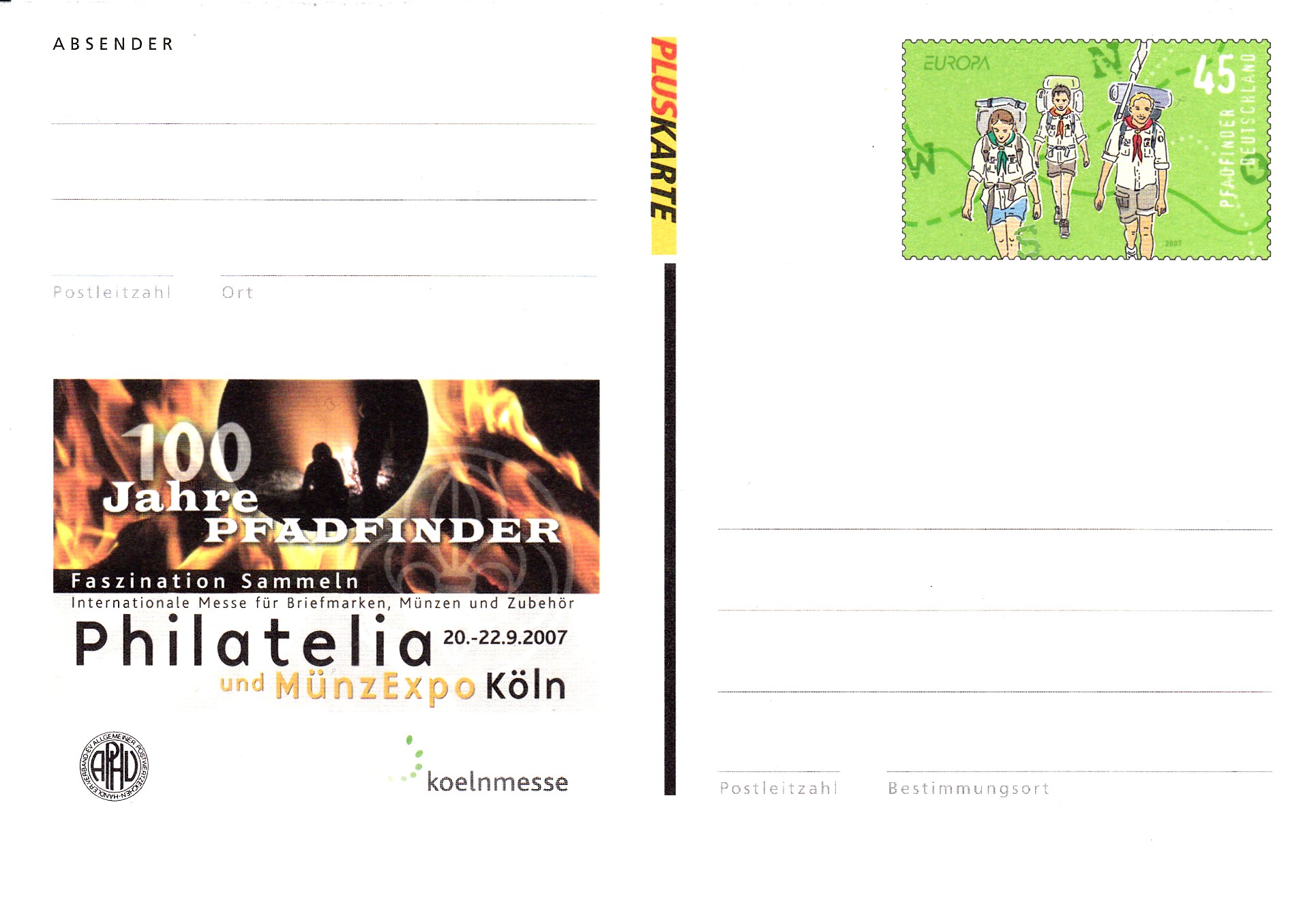 Zur "Philatelia 2007" in Köln erschien diese Sonderpostkarte, MiNr. PSo 96, mit dem Werteindruck der Europamarke 2007. Hier ein ungebrauchtes Exemplar: