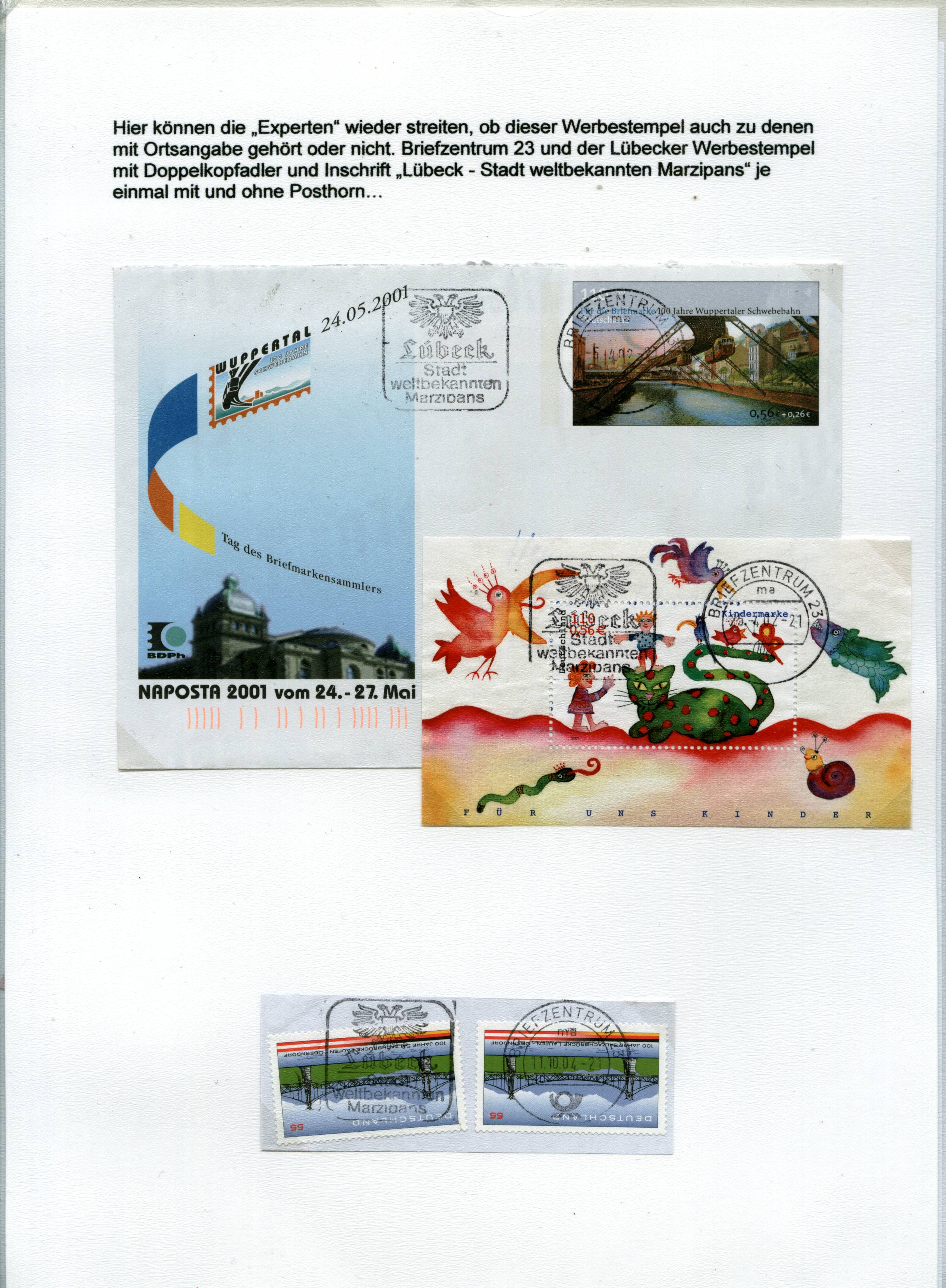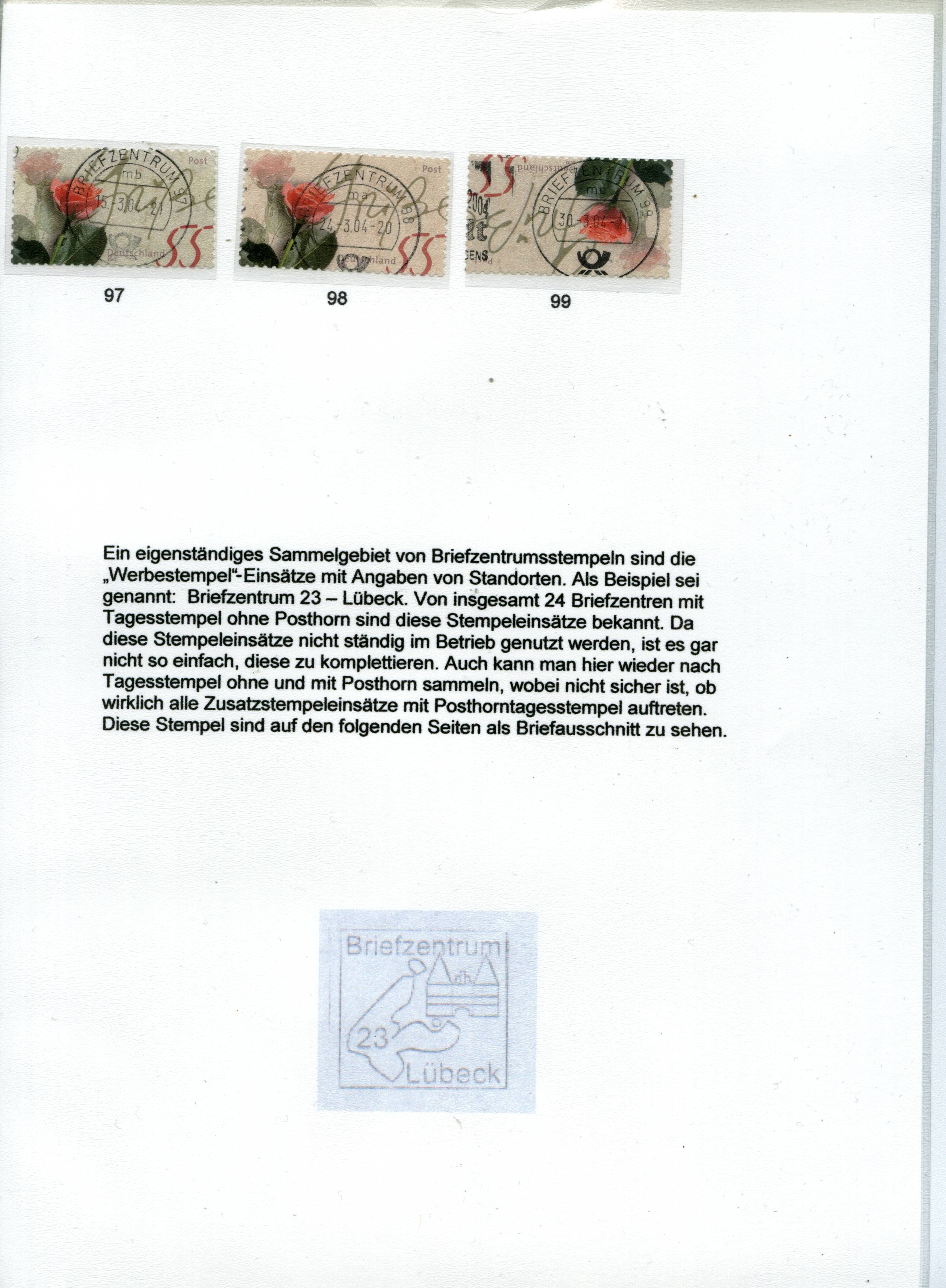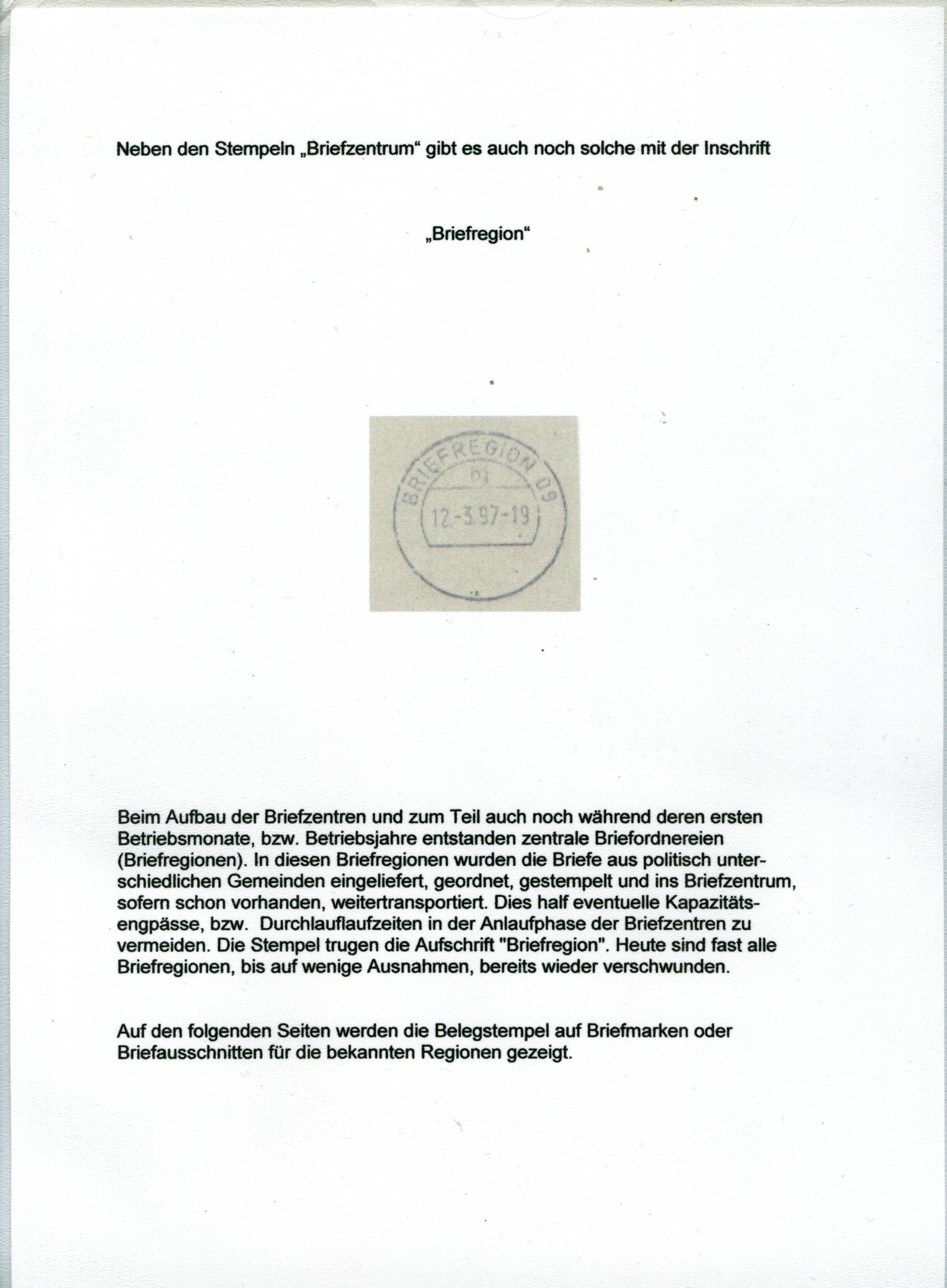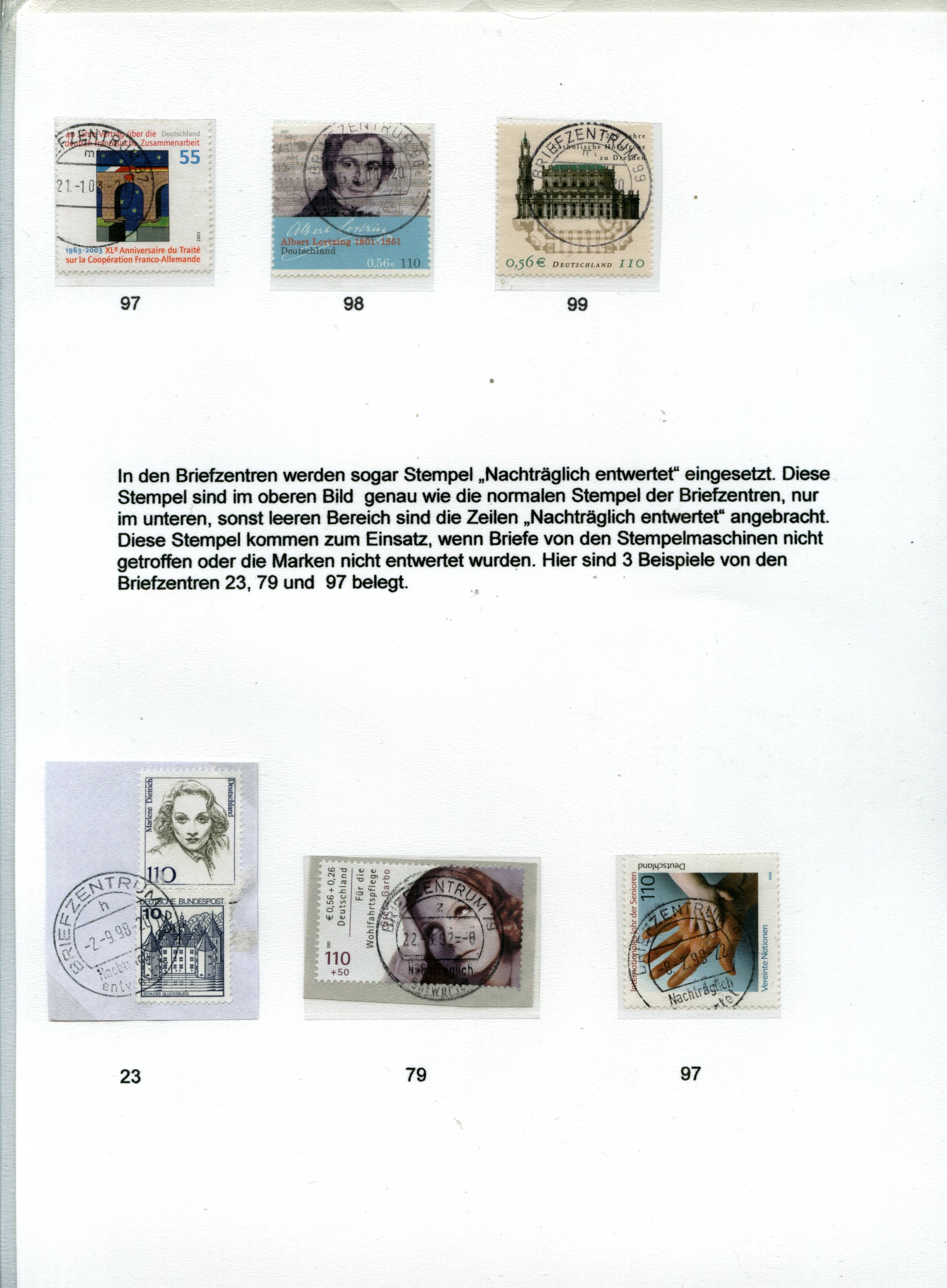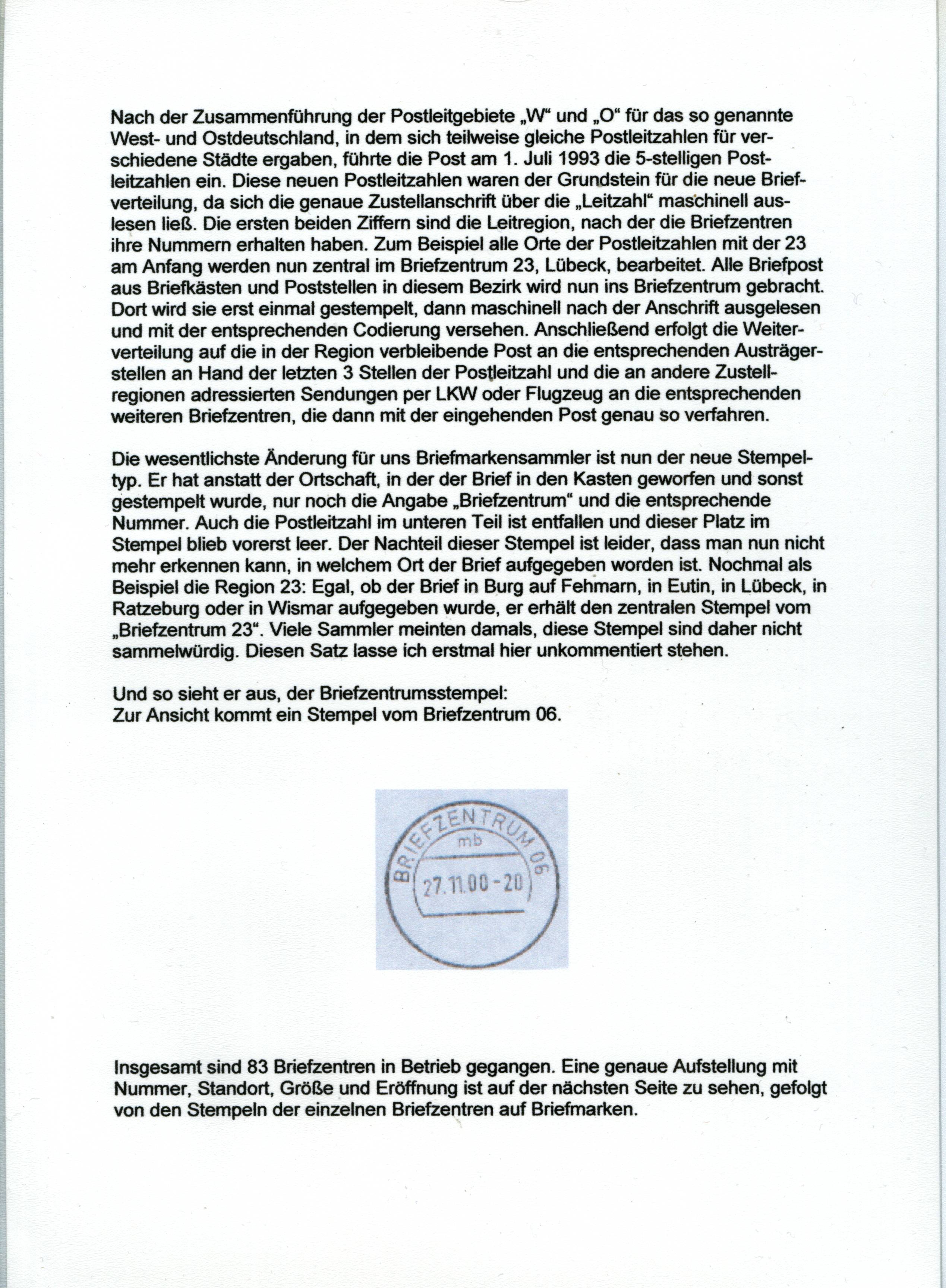 Inhalt der Sammlung sind die gängigen Maschinenstempel und vereinzelt auch mal ein Handstempel. Die neueren Teststempel (Tintenstrahldruck) und jetzt gängigen Grossbriefentwertungen sind hier noch nicht berücksichtigt, dafür fehlte mir bislang etwas die Zeit. Im folgenden zeige ich nun die Scans der Übersichtssammlung, wie sie auch schon auf dem hiesigen Tauschtag der jungen Briefmarkenfreunde einmal ausgestellt wurde. Bitte habt Verständnis, dass ich nicht die ganzen Texte nochmals abtippen möchte, es ist alles lesenswerte in den Bildern enthalten. Und gerade für junge Sammler ist es vielleicht ein Anreiz, auch eine gleichartige Sammlung aufzustellen, Material sollte noch genügend vorhanden sein