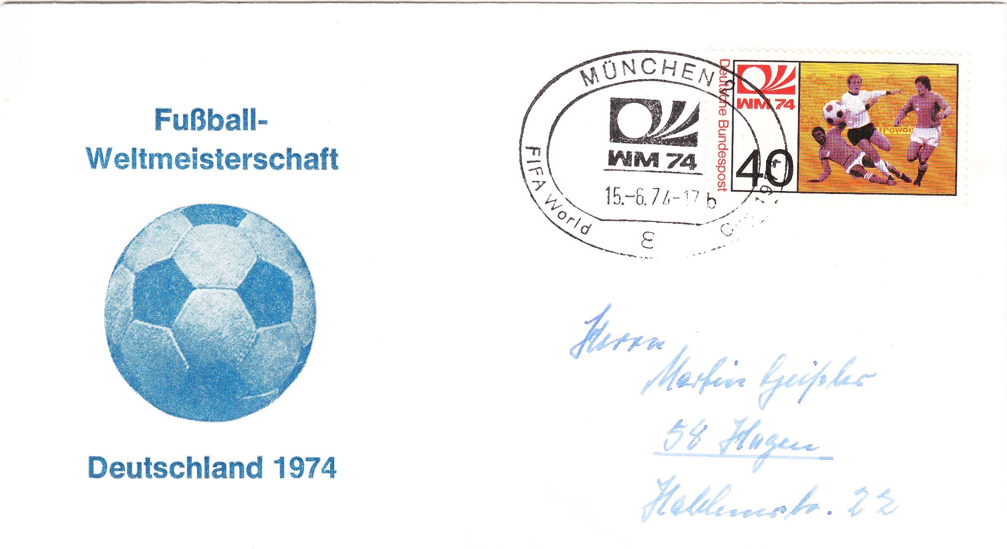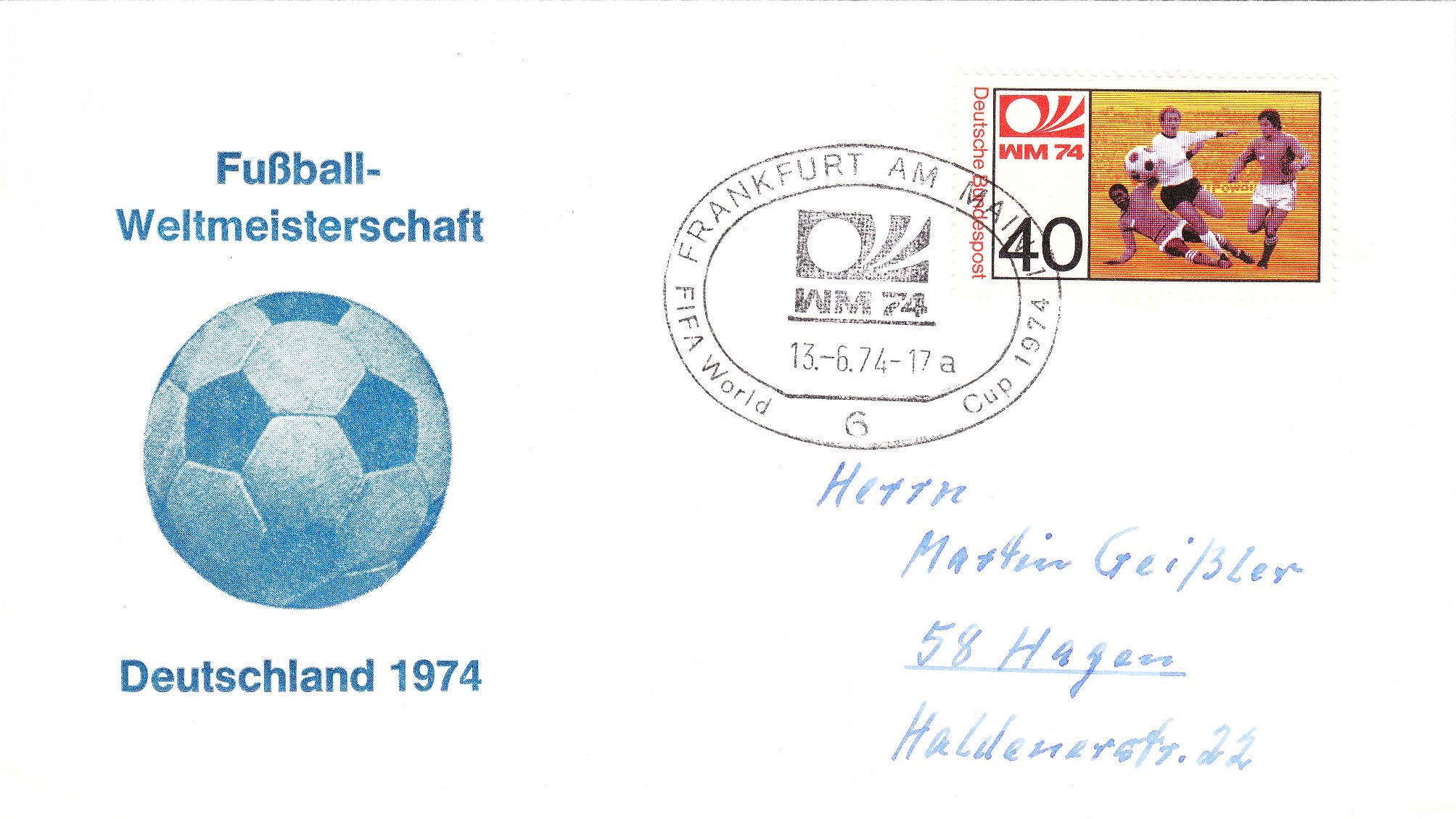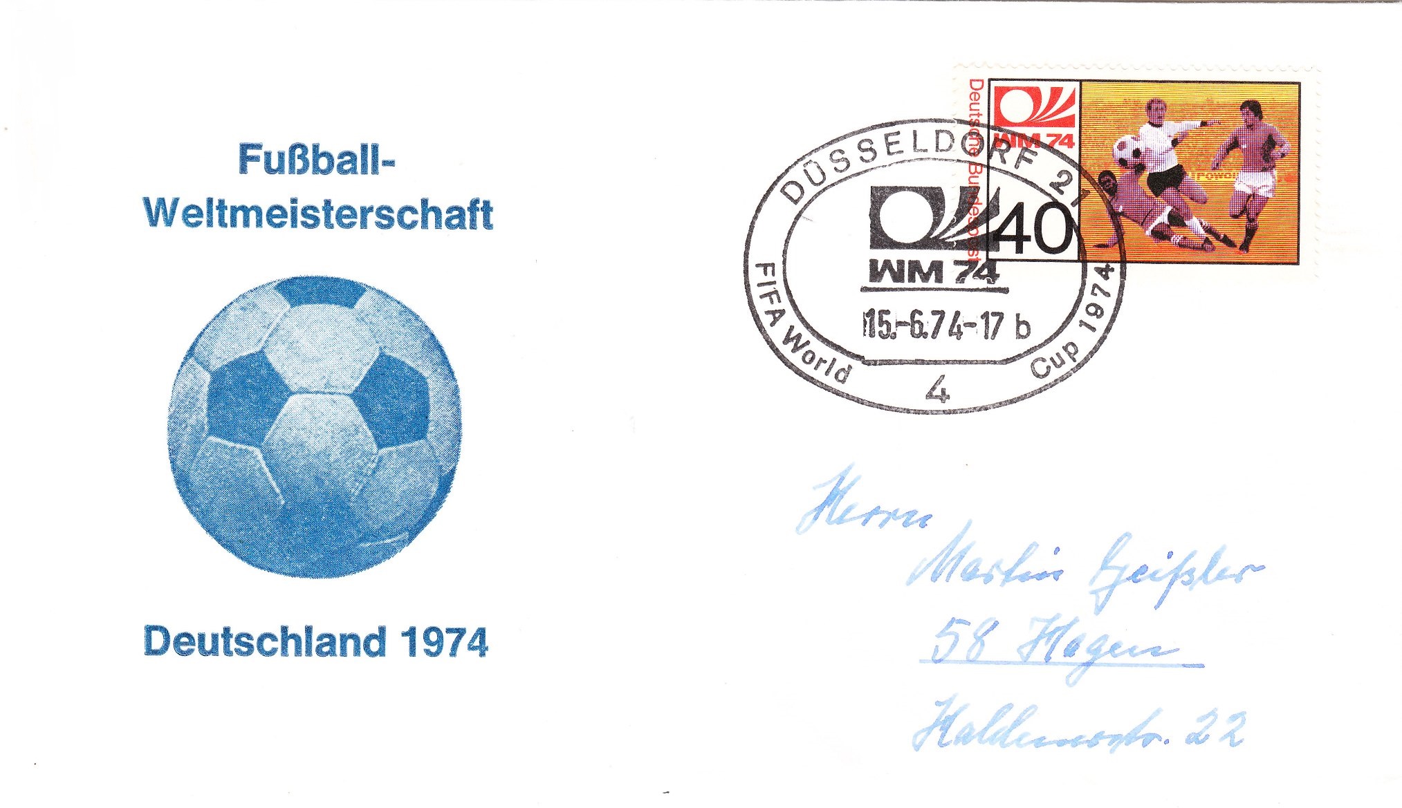 Dieser Beleg wurde am 18.06.1974 in Berlin mit dem zum Markenmotiv passenden Handwerbestempel entwertet: