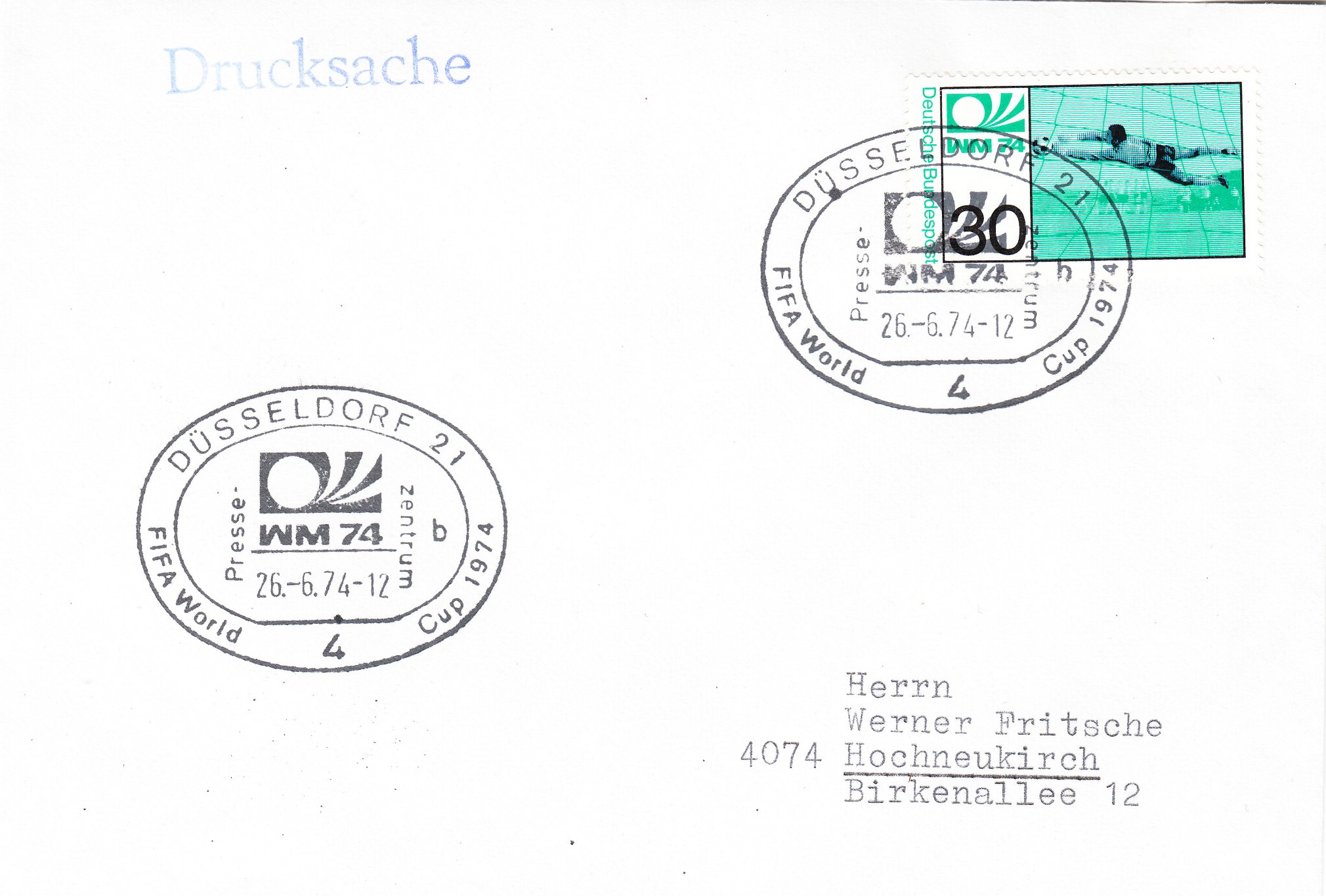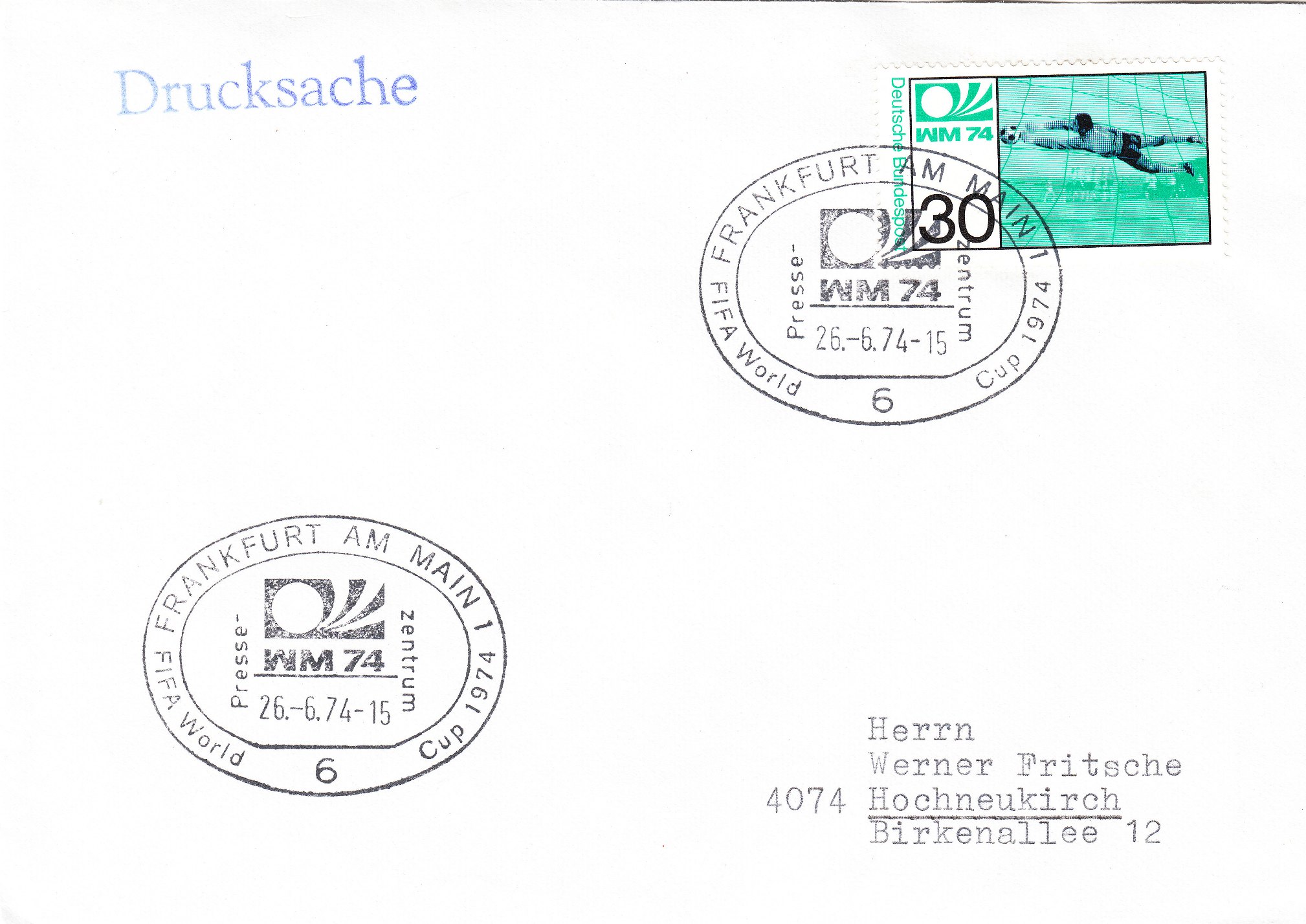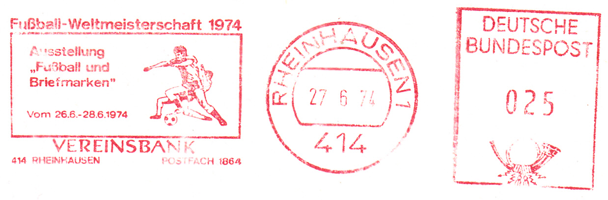 nach diesen vielen verschiedenen Briefen u. Karten mit den Sonderstempeln der Spielorte möchte ich auch einmal etwas aus dieser Zeit zeigen. Allerdings nicht das sich auf den Briefmarken links oben bzw. in den Stempeln wiederfindende dynamische Logo. Es soll wohl den Ball mit kraftvollen Schuß ins Tor darstellen (meine Interprätation).