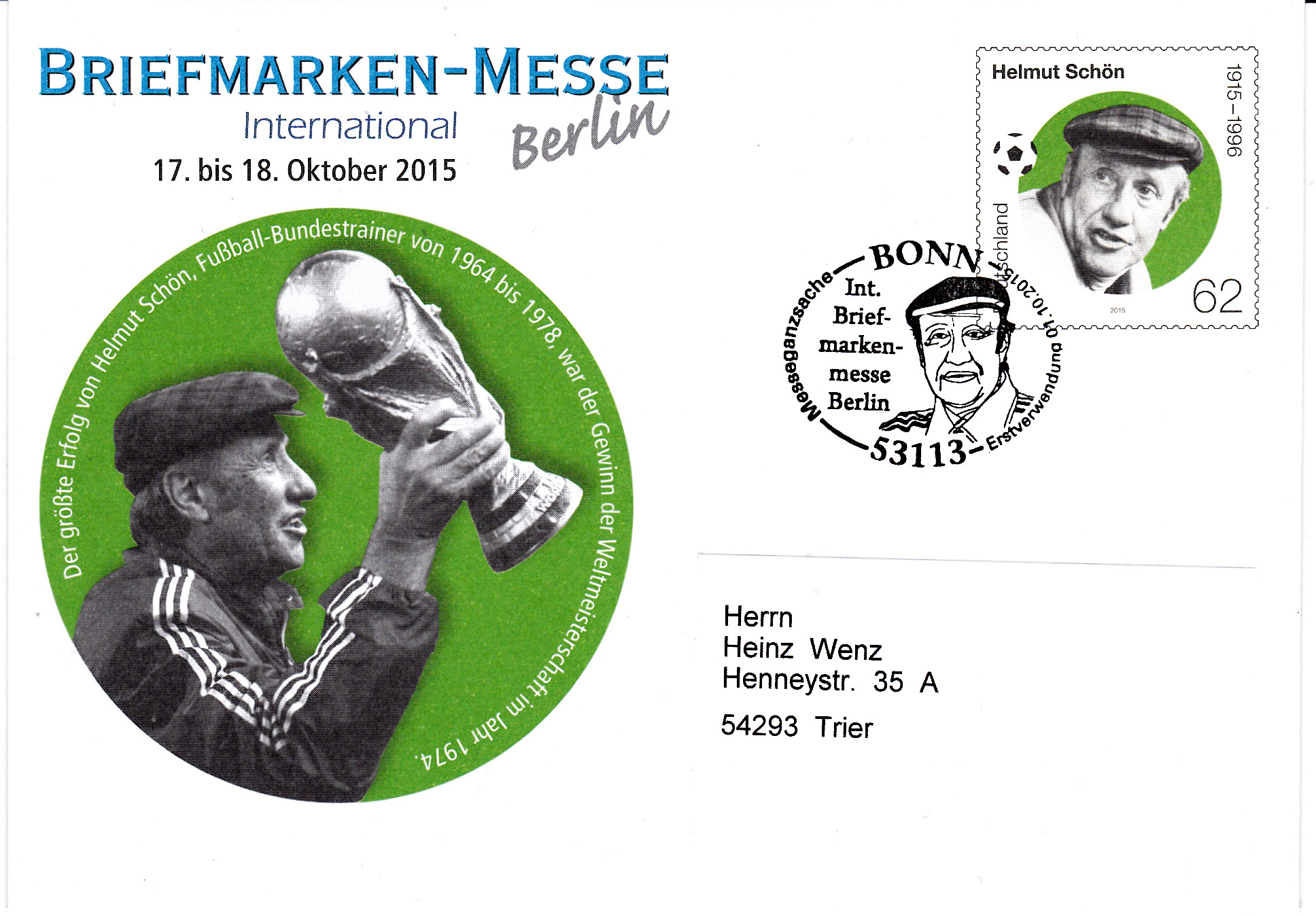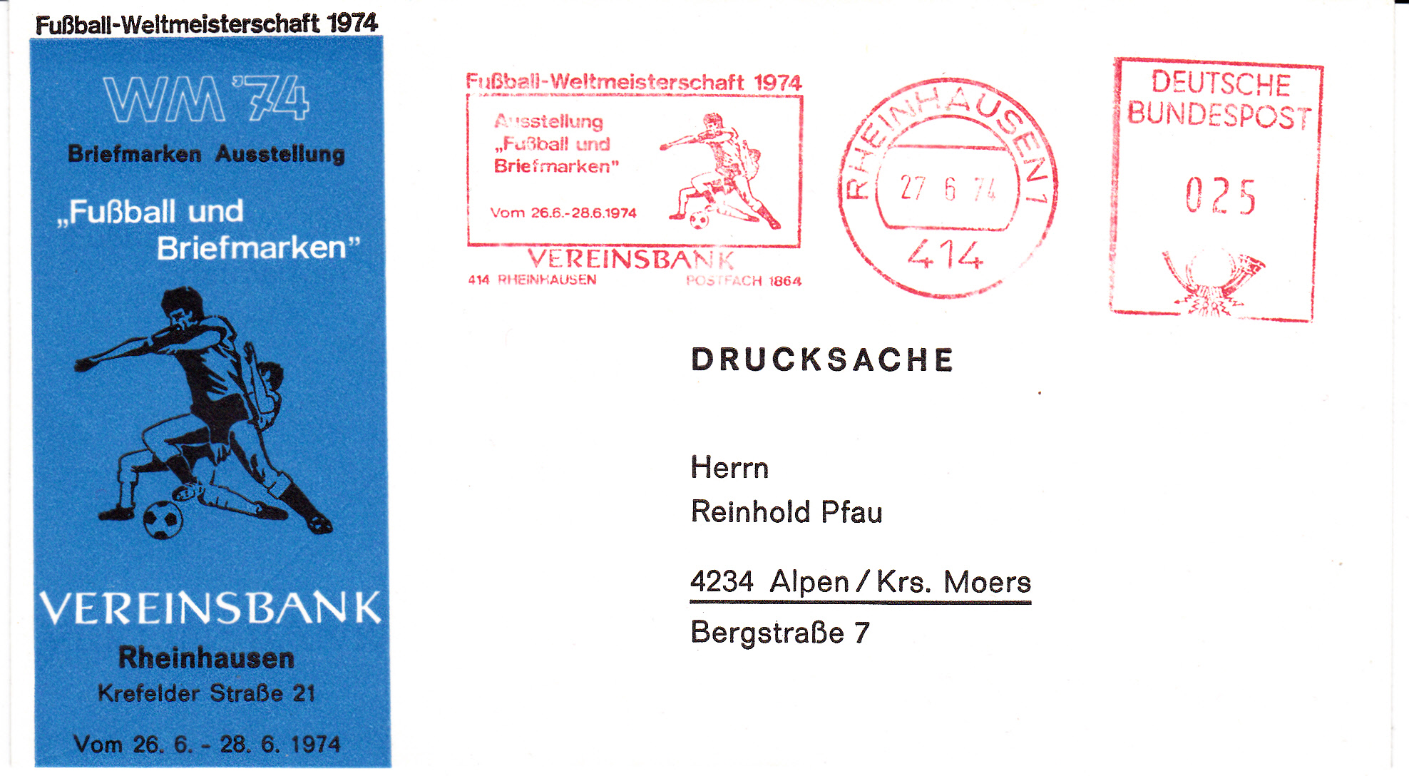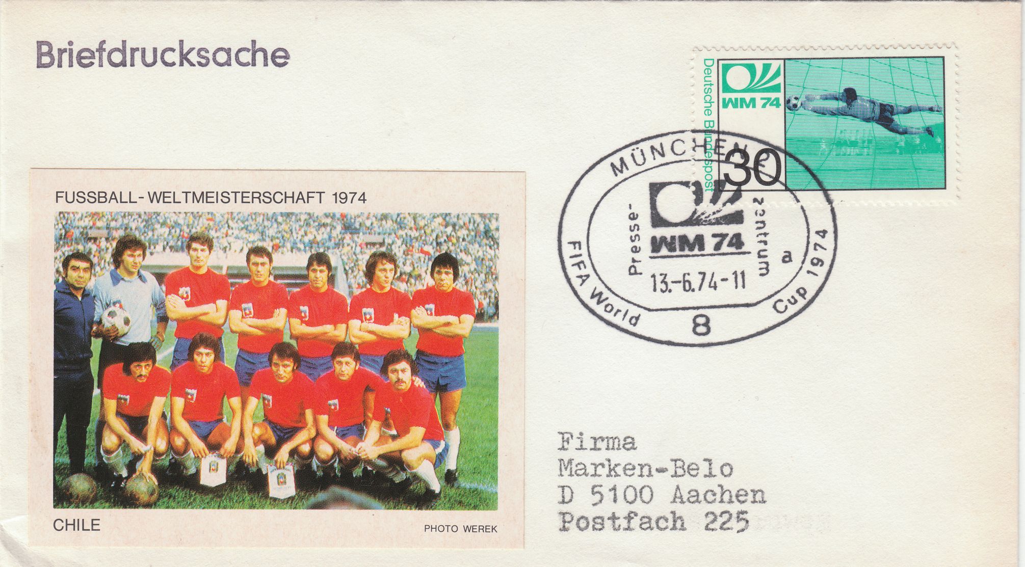 nach diesen vielen verschiedenen Briefen u. Karten mit den Sonderstempeln der Spielorte möchte ich auch einmal etwas aus dieser Zeit zeigen. Allerdings nicht das sich auf den Briefmarken links oben bzw. in den Stempeln wiederfindende dynamische Logo. Es soll wohl den Ball mit kraftvollen Schuß ins Tor darstellen (meine Interprätation).