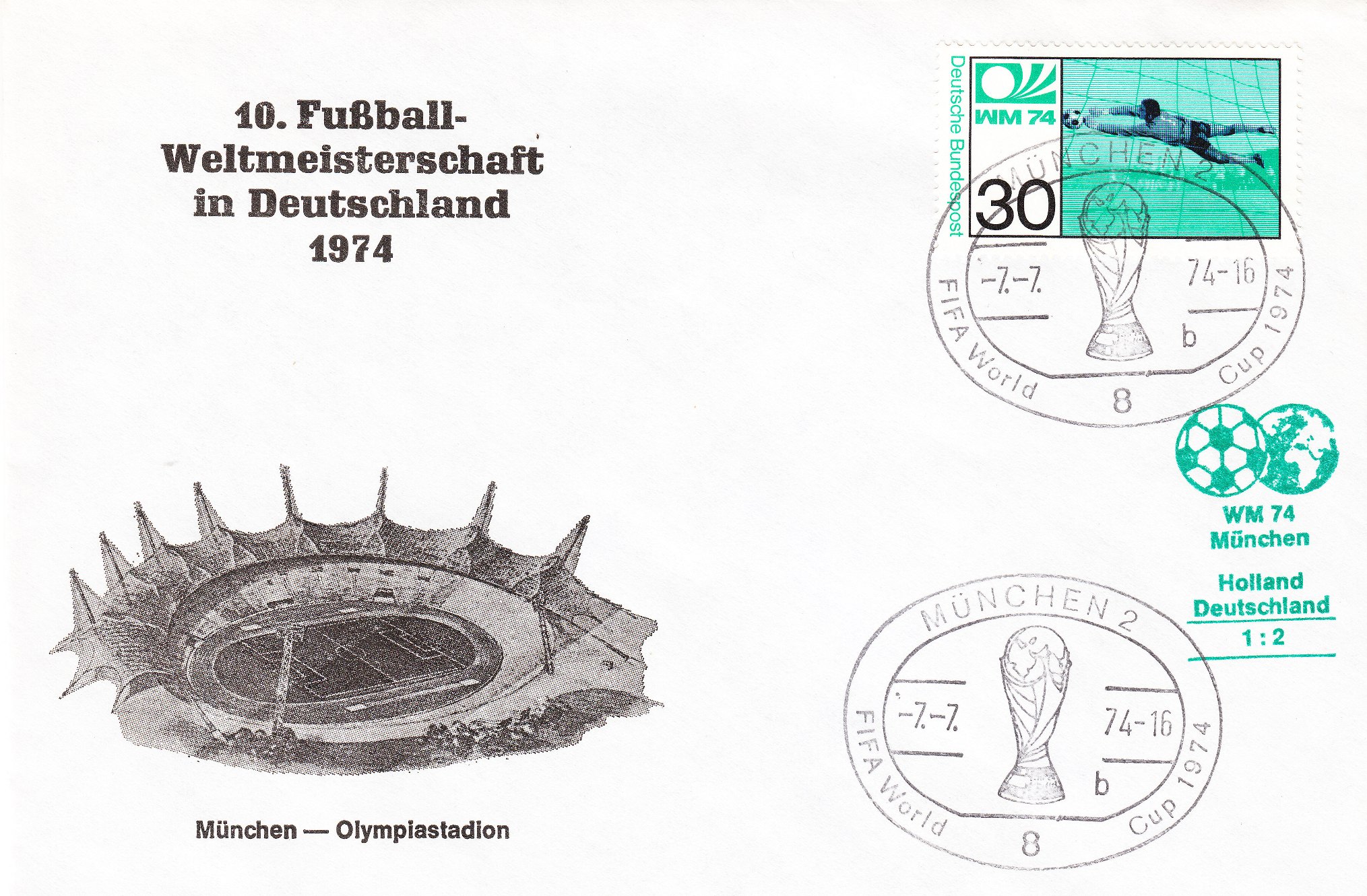 Die Maximumkarte wurde dann aus Anlaß des Endspiels der WM 1974 am 07.07.1974 in München abgestempelt.