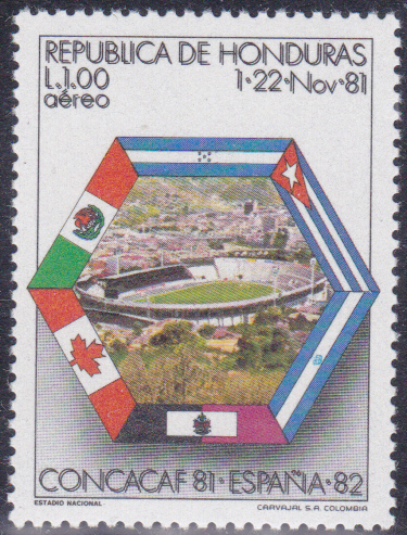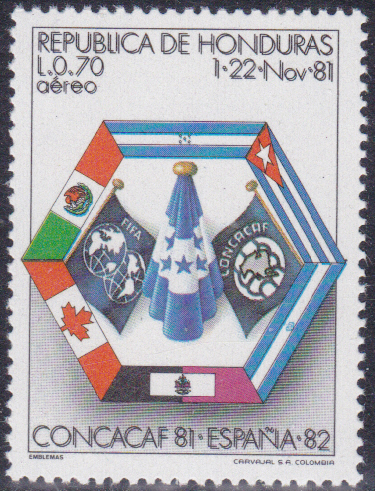 Dazu gab es in Honduras eine Markenausgabe. Jede Marke zeigt die Flaggen der teilnehmenden Länder.