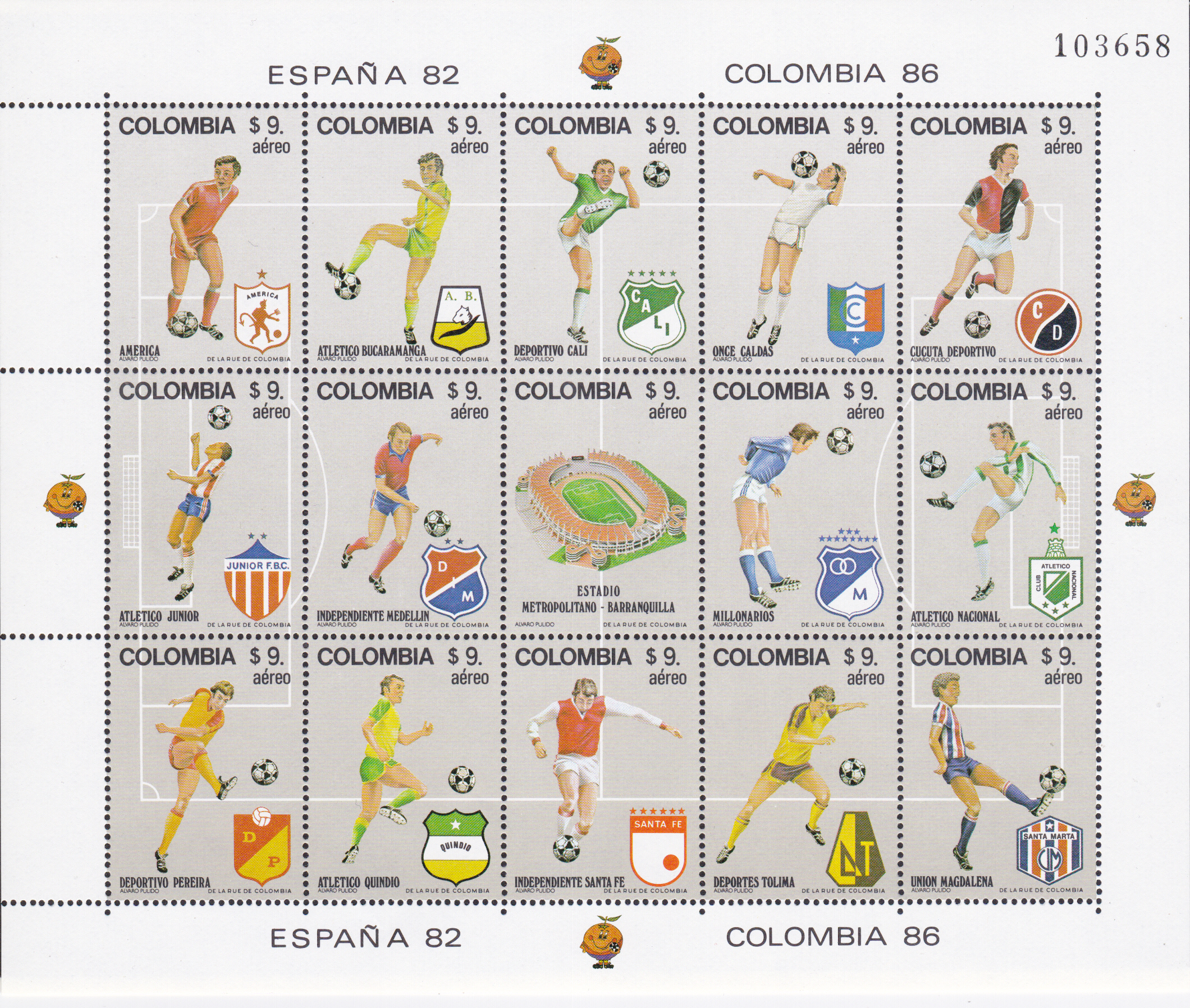 In Kolumbien ist zur WM 1982 in Zusammendruckbogen mit insgesamt 15 Marken erschienen. 14 Marken zeigen je einen Spieler und das Wappen seines Vereines aus der obersten Spielklasse in Kolumbien (1982?). Die Marke in der Mitte des Bogens zeigt das Estadio Metropolitano Roberto Meléndez (1986–1991: Estadio Metropolitano) in Barranquilla (Spielstätte von Atlético Junior).