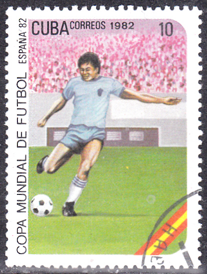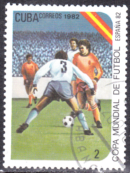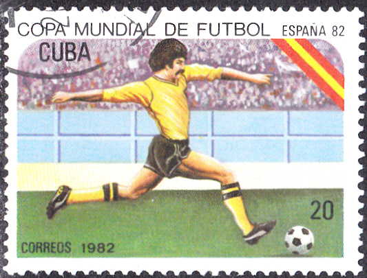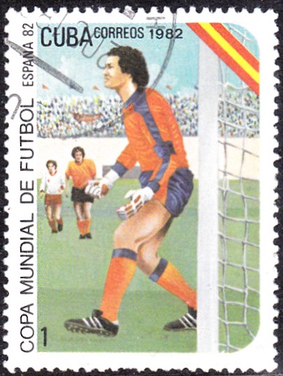 In Kuba ist auch noch eine zweite Serie zur WM 1982 erschienen. Die Marke zu 1C (MiNr 2618) zeigt einen Torwart vor seinem Tor.