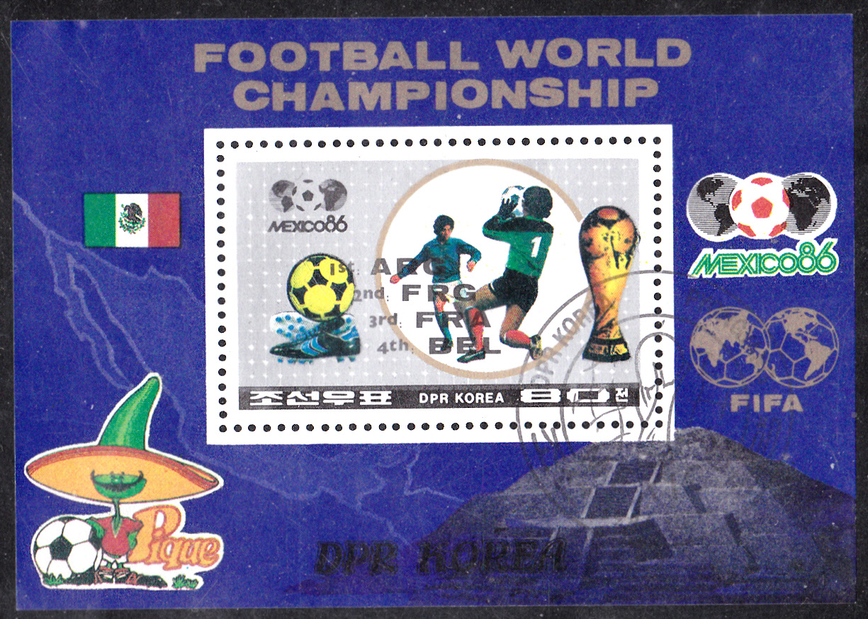 In Korea-Nord wurde der zur WM 1986 verausgabte Block 213 im Oktober 1986 mit einem schwarzen Odr.-Aufdruck herausgegeben. Jetzt sind die ersten vier Plätze bei der WM 1986 auf dem Block (jetzt MiNr 221)zu lesen: