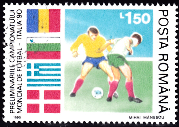 In Rumänien ist am19. März 1990 eine Markenserie zur WM 1990 erschienen, die die Qualifikationsgruppe dokumentiert. In der Qualifikationsgruppe 1 für Europa spielte Rumänien mit Dänemark, Bulgarien und Griechenland.