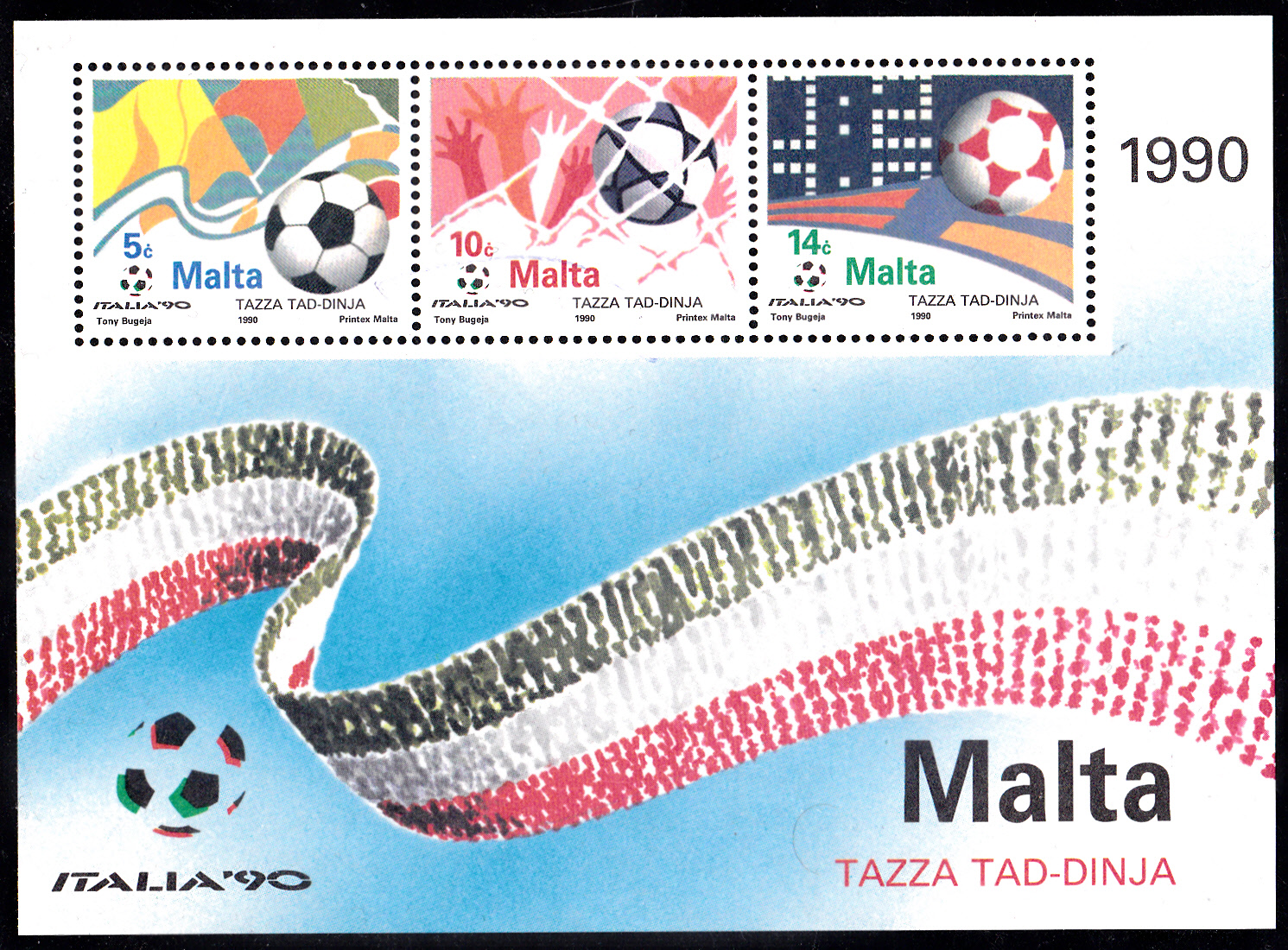 In Malta sind zur Fußball WM 1990 drei Marken mit symbolischen Darstellung und jeweils einem Fußball erschienen: