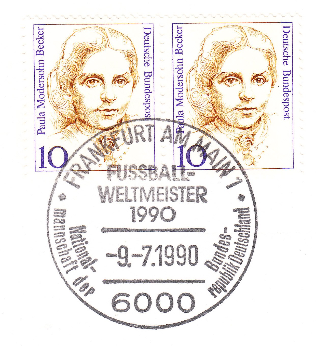 Diesen Sonderstempel zum Titelgewinn gab es am 09.07.1990 in Frankfurt, nachdem die Deutsche Nationalmannschaft am 08.07.1990 im Finale Argentinien mit 1:0 besiegt hatte: