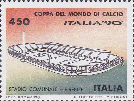 Diese Marke aus Italien (MiNr 2108) bildet das Stadio Comunale Artemio Franchi in Florenz ab.