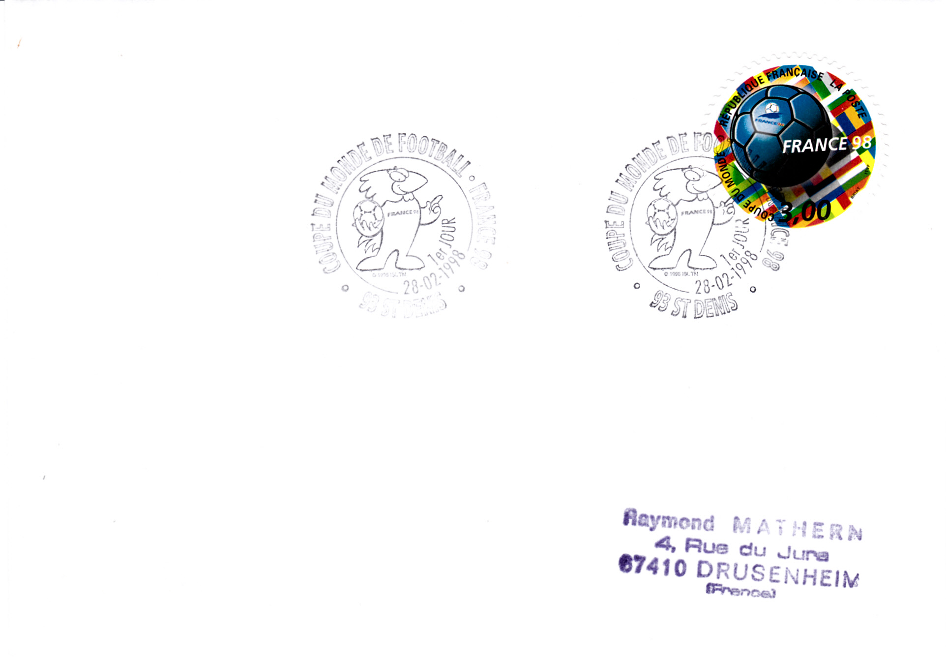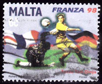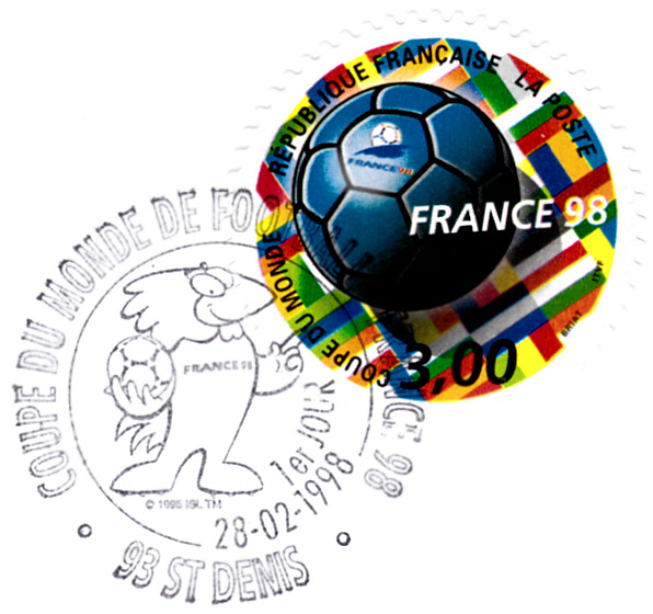 Aus der Serie aus Malt zur WM in Frankreich kann ich hier eine Marke (MiNr 1047) vorstellen. Der Stempel ist zwar nicht unbedingt sammelwürdig, aber zur Vorstellung des Motives reicht die Marke aus.