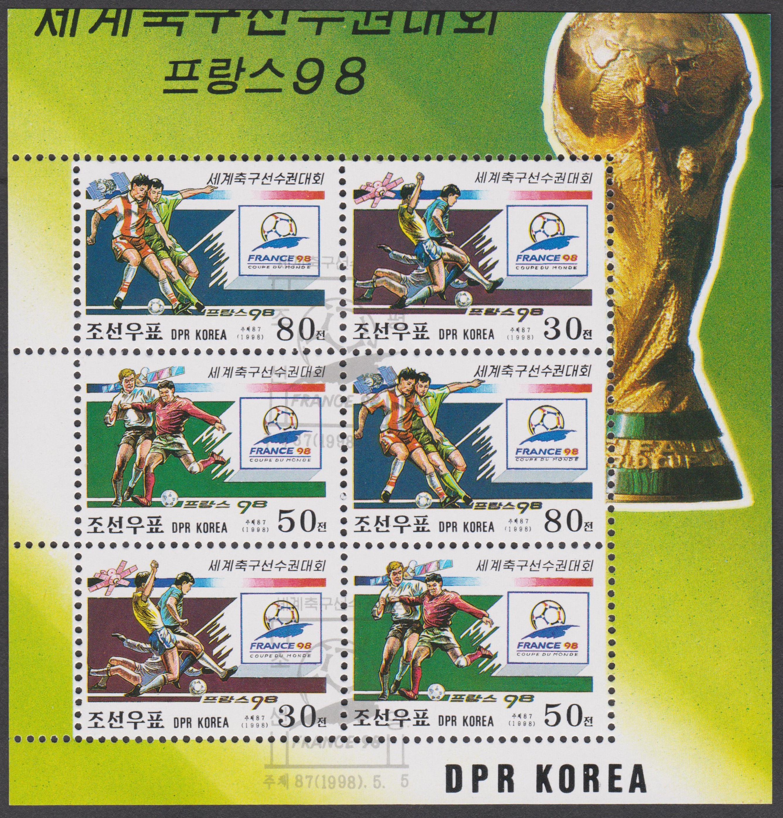 Nordkorea MiNr. 4160 - 4162 erschienen am 21.04.1998 aus Anlaß der Fußball-WM in Frankreich: