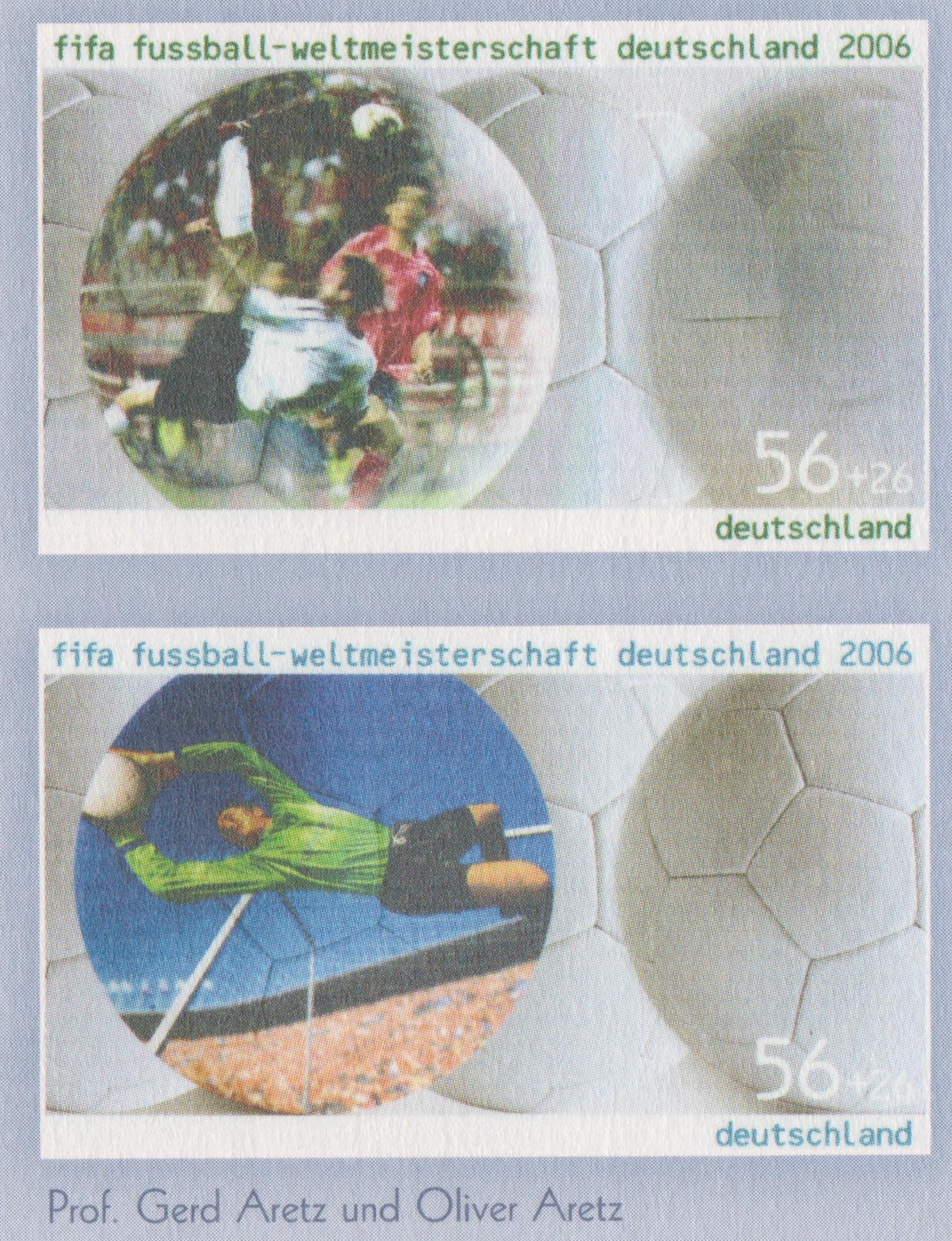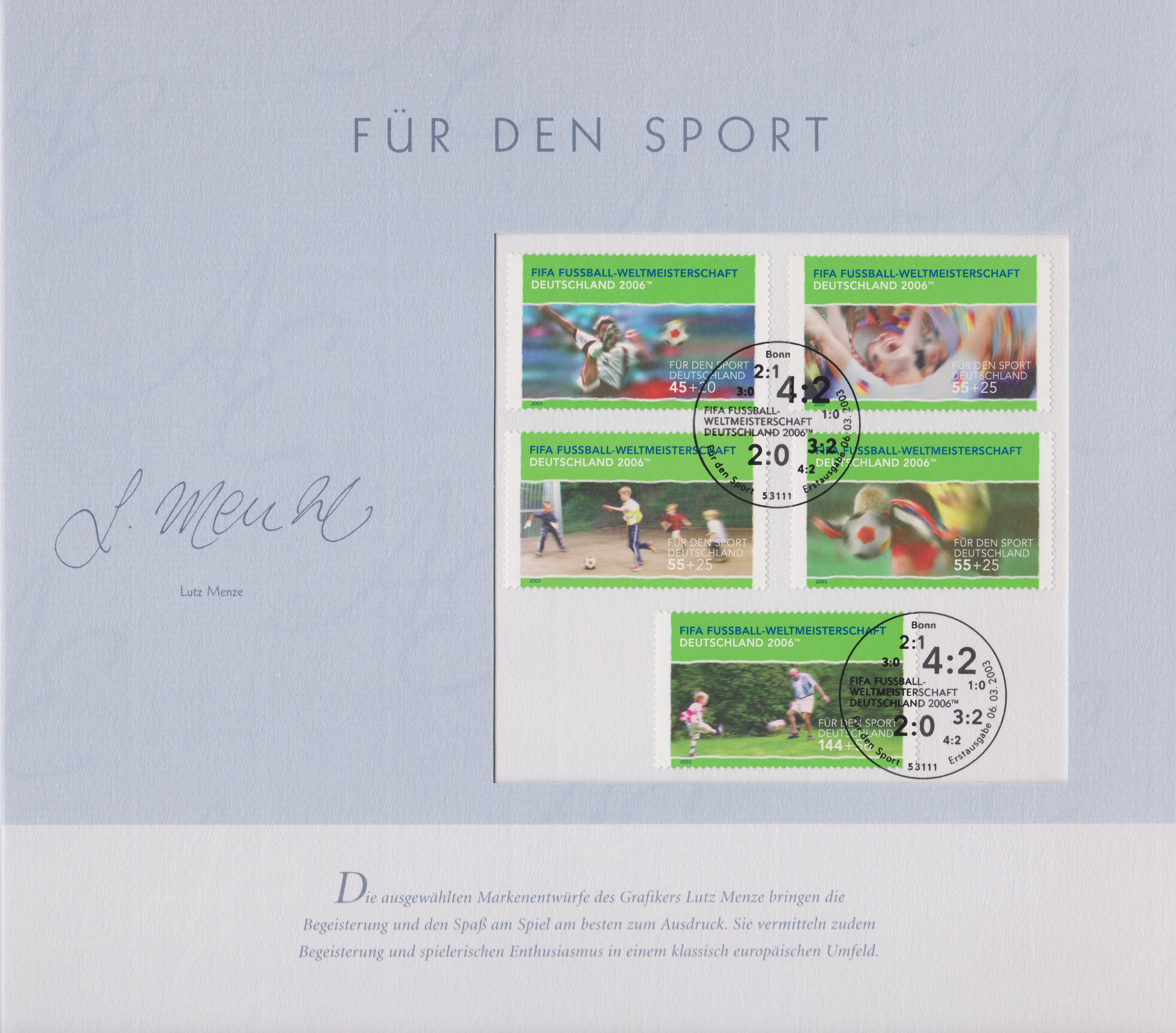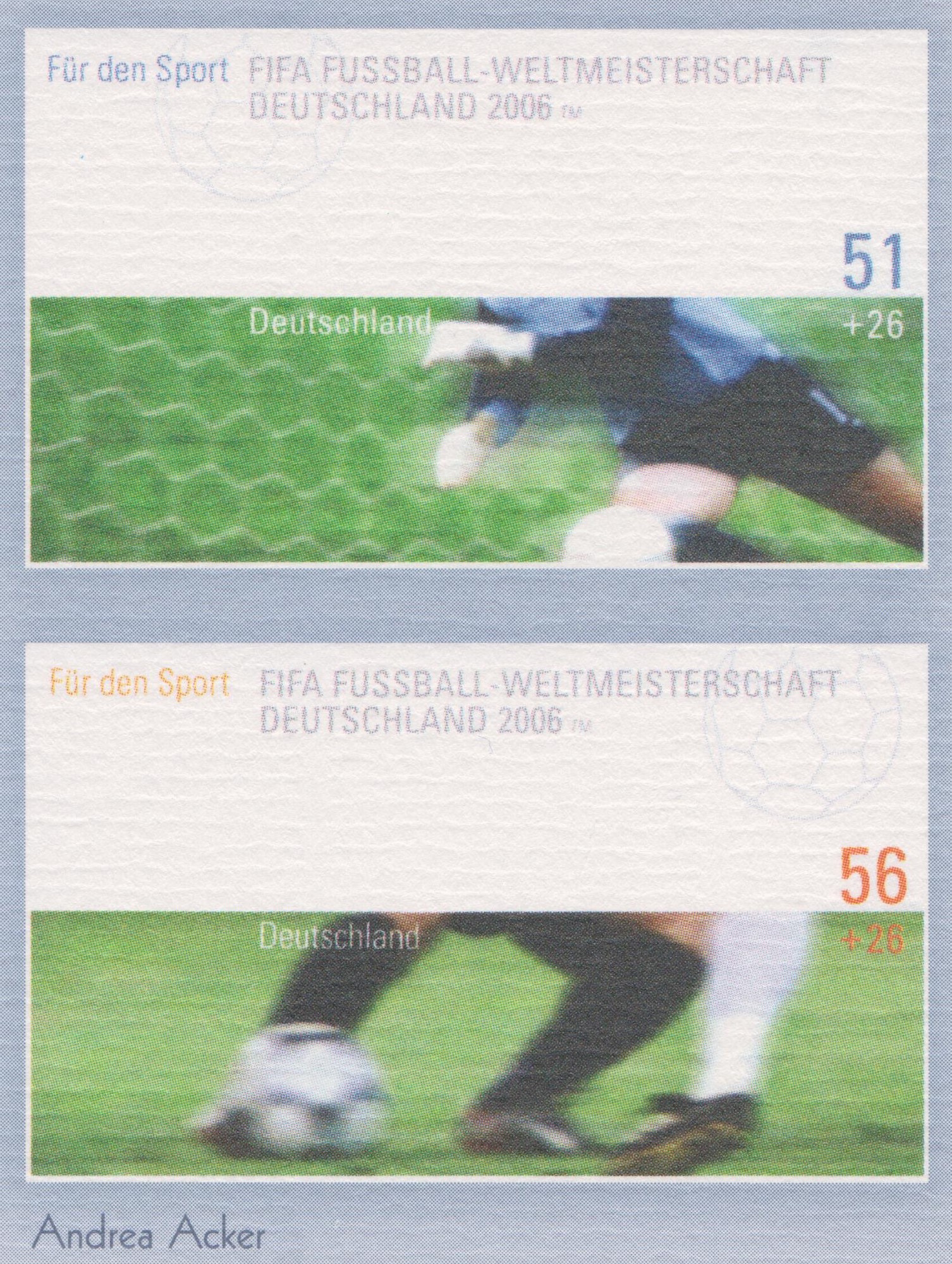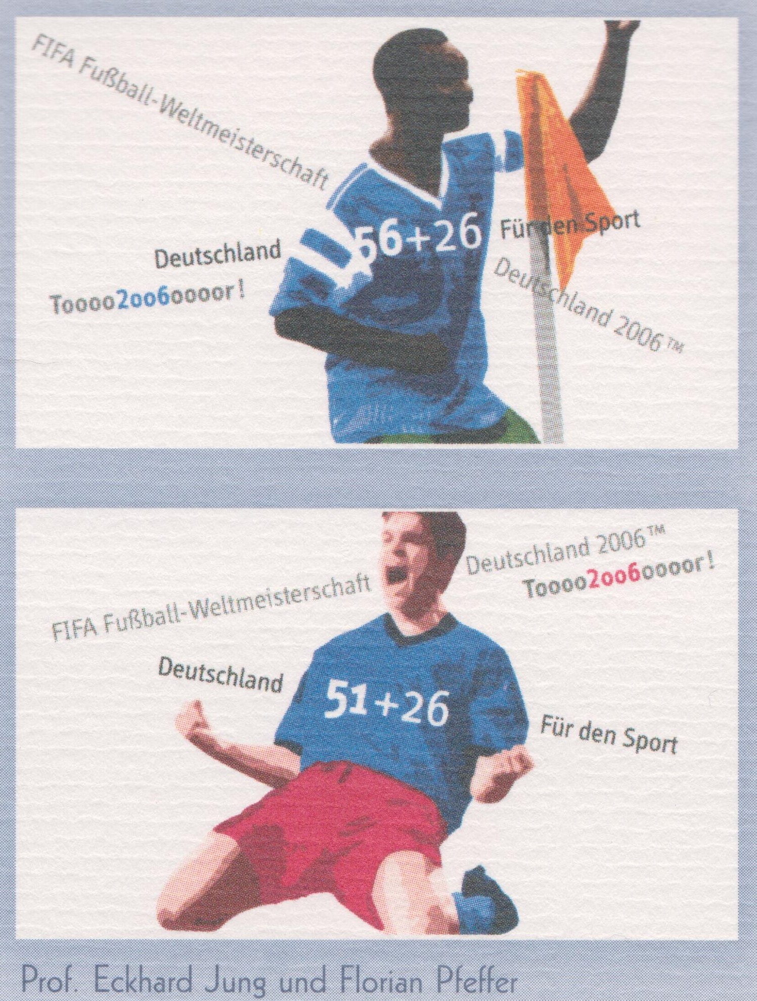 Einschreibebrief nach Österreich frankiert mit der Marke zu 55+25 Cent (MiNr 2518) zur WM 2006 mit der Abbildung der Allianz-Arena München und einer Marke zu 2,20€ der DS "Sehenswürdigkeiten" (MiNr 2307). Die Marke zur WM 2006 wurde mit dem Ersttagsonderstempel aus Berlin gestempelt, die Zusatzfrankatur mit einem Tagesstempel der Stempelstelle Berlin. In Österreich erhielt der Brief noch einen gelben "R-Zettel".