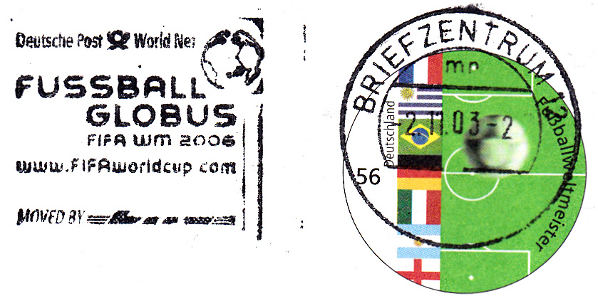 Hier eine gelaufene Ganzsache mit einem Maschinen-Werbestempel aus dem Briefzentrum 12 mit einem Werbeeinsatz "Fußball-Globus " zur WM 2006.