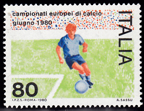 Zur WM 1980 erschien in Italien eine Marke (MiNr 1693) mit einem Spieler an der Strafraumgrenze.