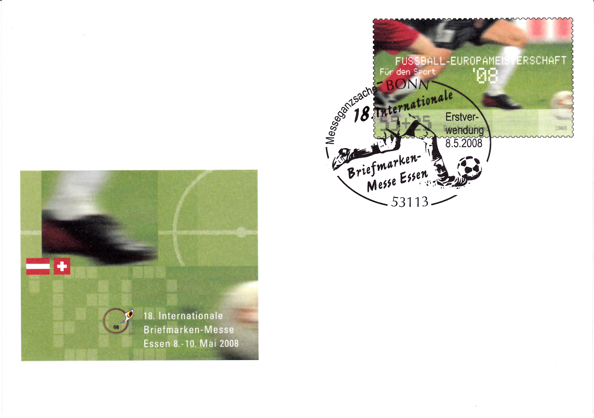 Für die hier schon vorgestellte Sonderganzsache (MiNr USo 155) zur Briefmarkenmesse in Essen mit dem Wertstempel "Für den Sport - Fußball EM 2008" wurde auch ein Erstverwendungsstempel Essen eingesetzt.
