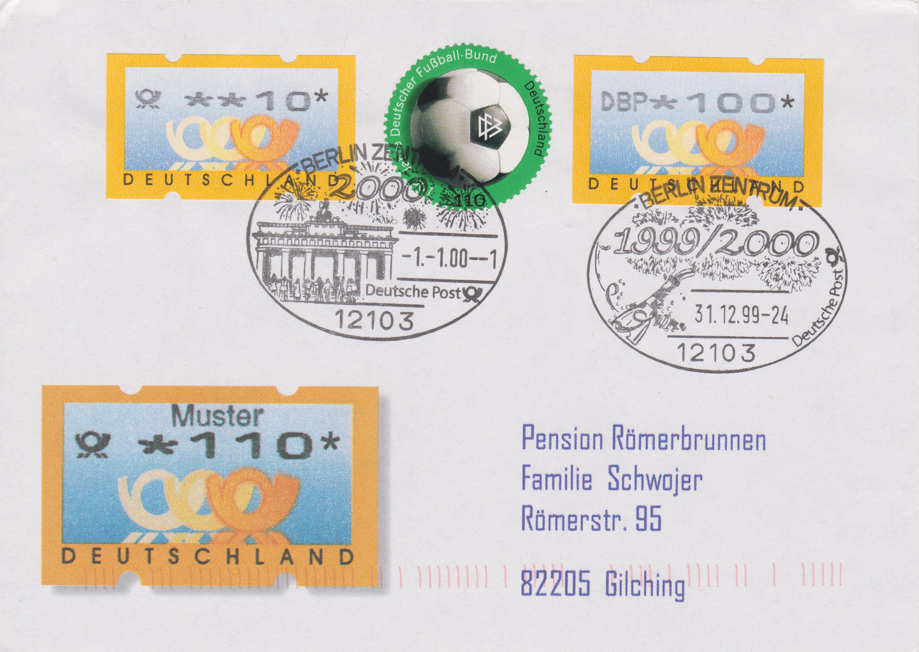 Es kamen zum Jahrtausend-Wechsel in 12103 BERLIN ZENTRUM zwei verschiedene Sonderstempel auf einer Briefsendung zum Einsatz, was eine seltene Ausnahme-Regelung für den Jahrtausend-Wechsel) 31.12.1999 „Sylvester-Feuerwerk“ und 01.01.2000 „Brandenburger Tor – Feuerwerk“ darstellte.
