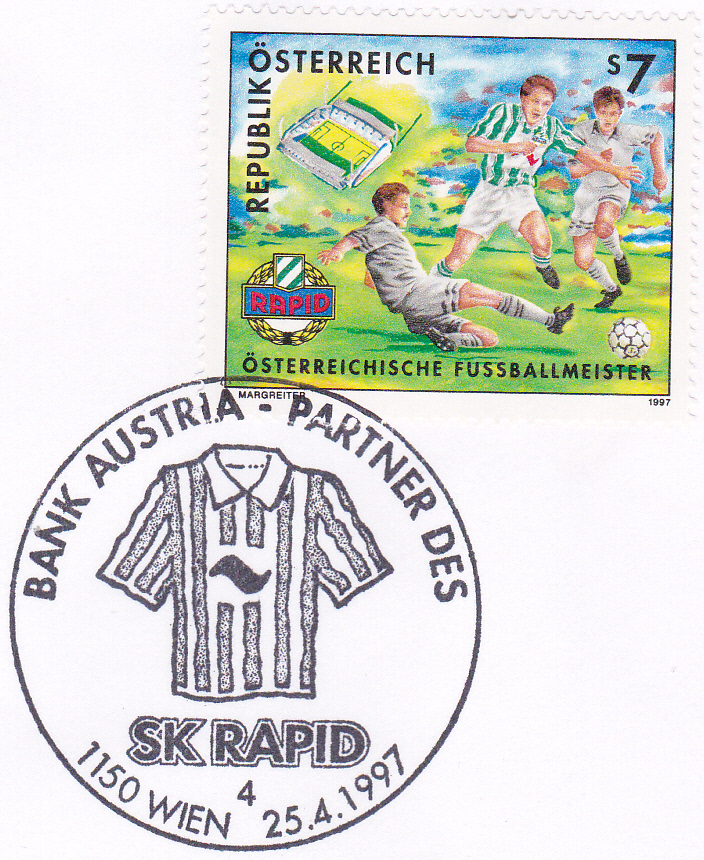 Zur Meisterschaft im Jahre 1996 gab es in Österreich eine Marke (MiNr 2217). Sie zeigt eine Spielszene, das Gerhard-Hanappi-Stadion (1977 bis 1981 Weststadien; 2014/2015 Abriss) und das Vereinsemblem.