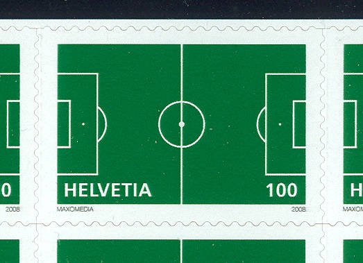 Die Schweiz, unser großes Philanachbarland, brachte 2008 ein rasengrünes Fußballspielfeld an die Postschalter.