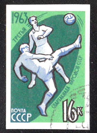 Am 27.Juni 1963 erschien in der Sowjetunion in einer Serie zur 3. Spartakiade der Völker der UdSSR diese Marke (MiNr 2777B) mit der Abbildung einer Spielszene beim Fußball. Die Marke gab es am 27. Juli 1963 auch als gezähnte Variante (MiNr 2777A).