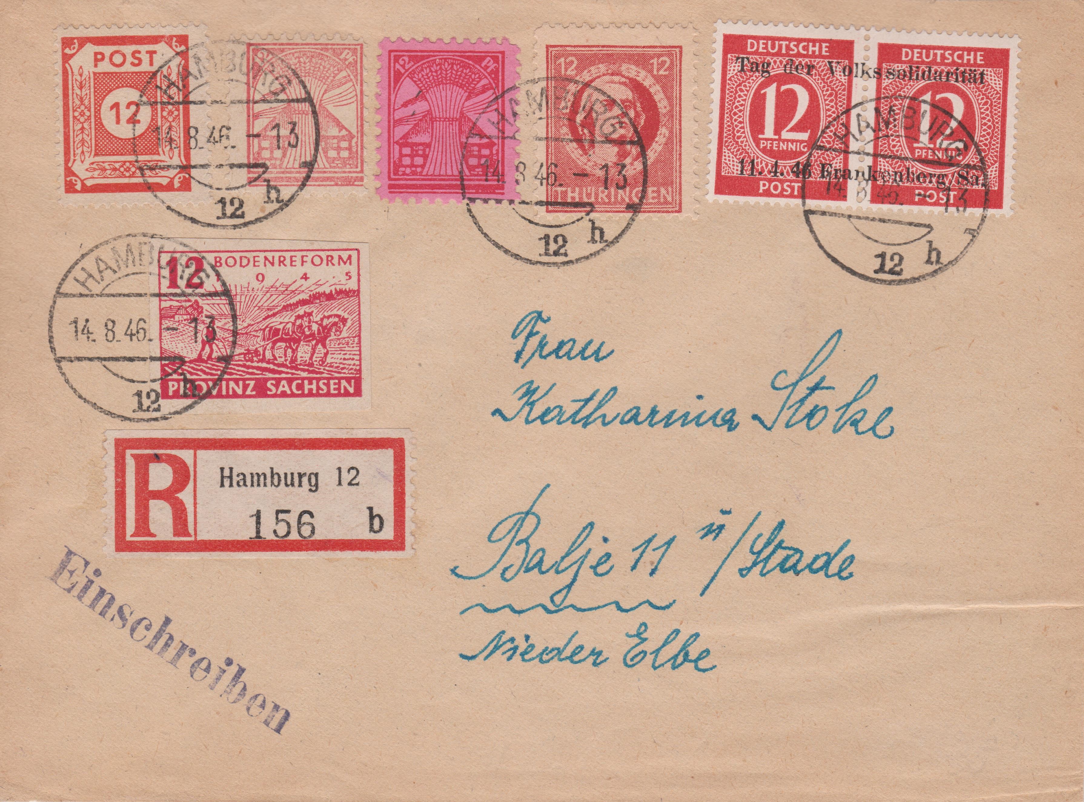 Diese Abart wurde hier am 14.08.1946 auf einem Brief per Einschreiben von Hamburg nach Balje verwendet und dürfte als solches wohl ein Unikat darstellen: