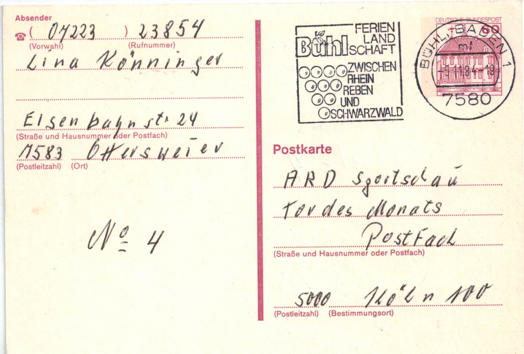 Postkarte (Ganzsache) mit Wertstempeleindruck aus Bühl