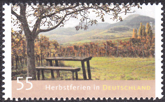 In der Serie "Ferien in Deutschland" gab es 2012 bei der Deutschen Post auch eine Marke (MiNr 2953) mit dem Thema "Herbstferien" mit einer herbstlichen Landschaft mit Weinbergen.