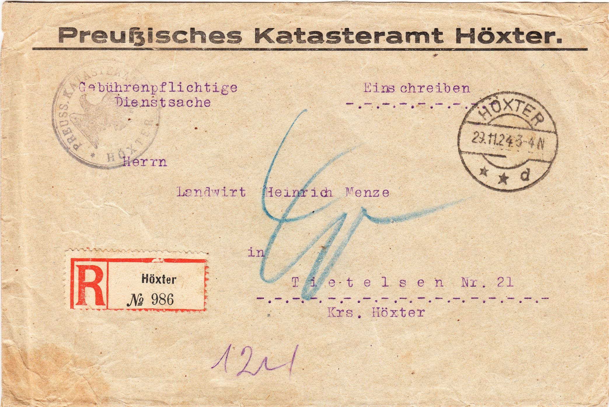 Behörden versandten an die Staatsbürger Postkarten, Drucksachen und Briefe unfrankiert, wenn die Behörde glaubte, die Nachricht liege vorwiegend im Interesse des Empfängers. Was dabei zu beachten ist, ergibt Abschnitt V, 1 der Postordnung von 1928: Die Behörde muß auf den Briefumschlag den Stempel "Portopflichtige Dienstsache" drücken und außerdem mit ihrem Siegel bekunden, daß es sich auch wirklich um eine solche handelt. Diese Postordnung wurde in der Bundesrepublik erst 1964 durch eine neue Postordnung ersetzt. Vom Empfänger wurde bei einer portopflichtigen Dienstsache nur das normale Porto kassiert.