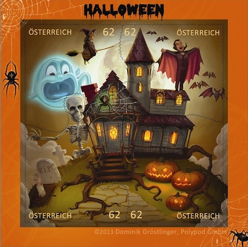 Auch Unfug wurde in dieser Nacht reichlich getrieben, mittlerweile beschränkt sich der Brauch in den USA darauf, dass verkleidete Kinder von Haus zu Haus ziehen und „Süßes oder Saures“ verlangen. Ende des vergangenen Jahrtausends verbreitete sich „Halloween“ dann wieder zurück nach Europa, zunächst nach Frankreich und von dort aus bis nach Deutschland. Für Kinder ist das Fest natürlich wesentlich spannender als der ohnehin nicht gefeierte Reformationstag: Sie können sich verkleiden und jede Menge Süßigkeiten einsammeln. Der Einzelhandel freut sich auf steigende Süßigkeitenumsätze und Postverwaltungen in aller Welt nutzen die Gelegenheit fleißig für die Ausgabe schaurig-schöner Briefmarken.