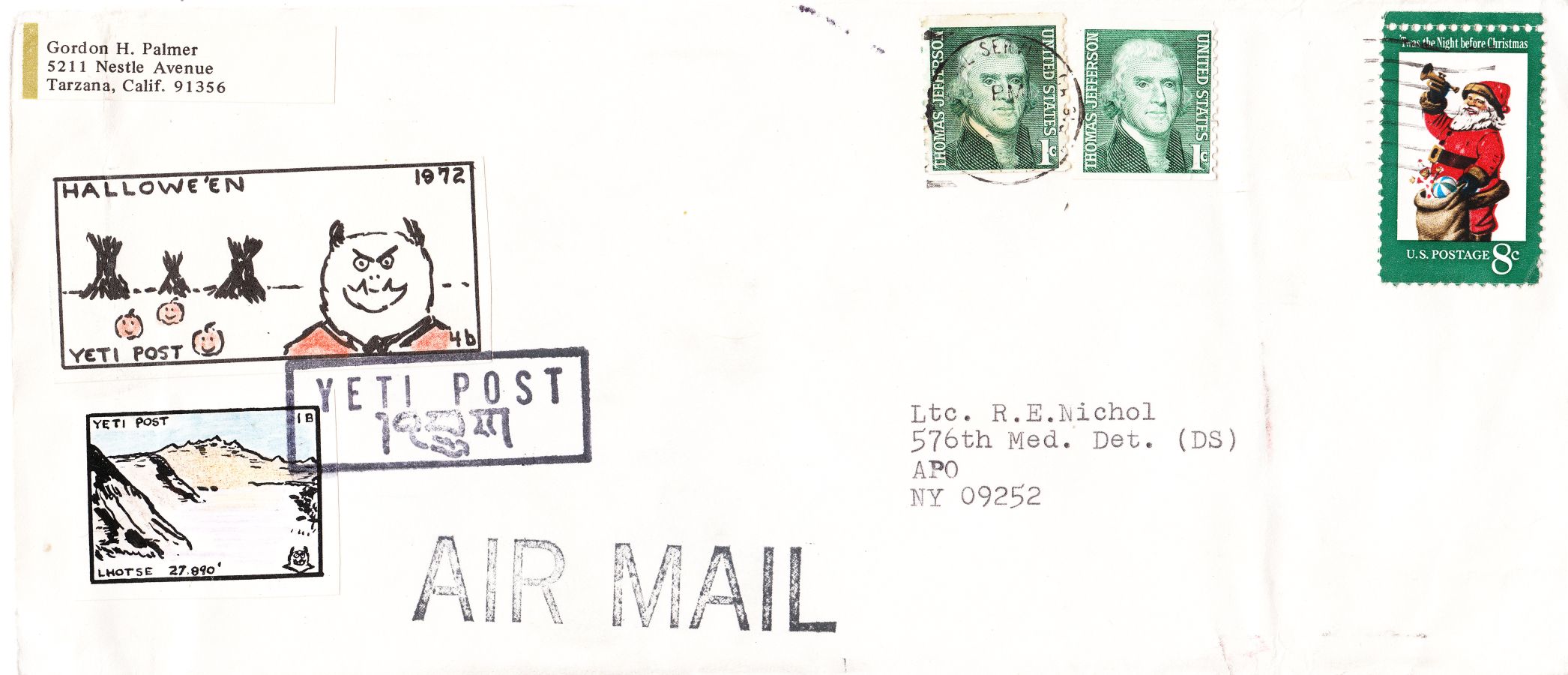 Dieser innerhalb der USA gelaufene Brief trägt vorderseitig sowie rückseitig Lokalpostmarken der "YETI POST", die von 1965 bis 1987 existierte und etwa 1000 verschiedene Cinderellas auflegte, dabei auch ein in diesen Thread passendes Motiv "HALLOWEEN 1972":