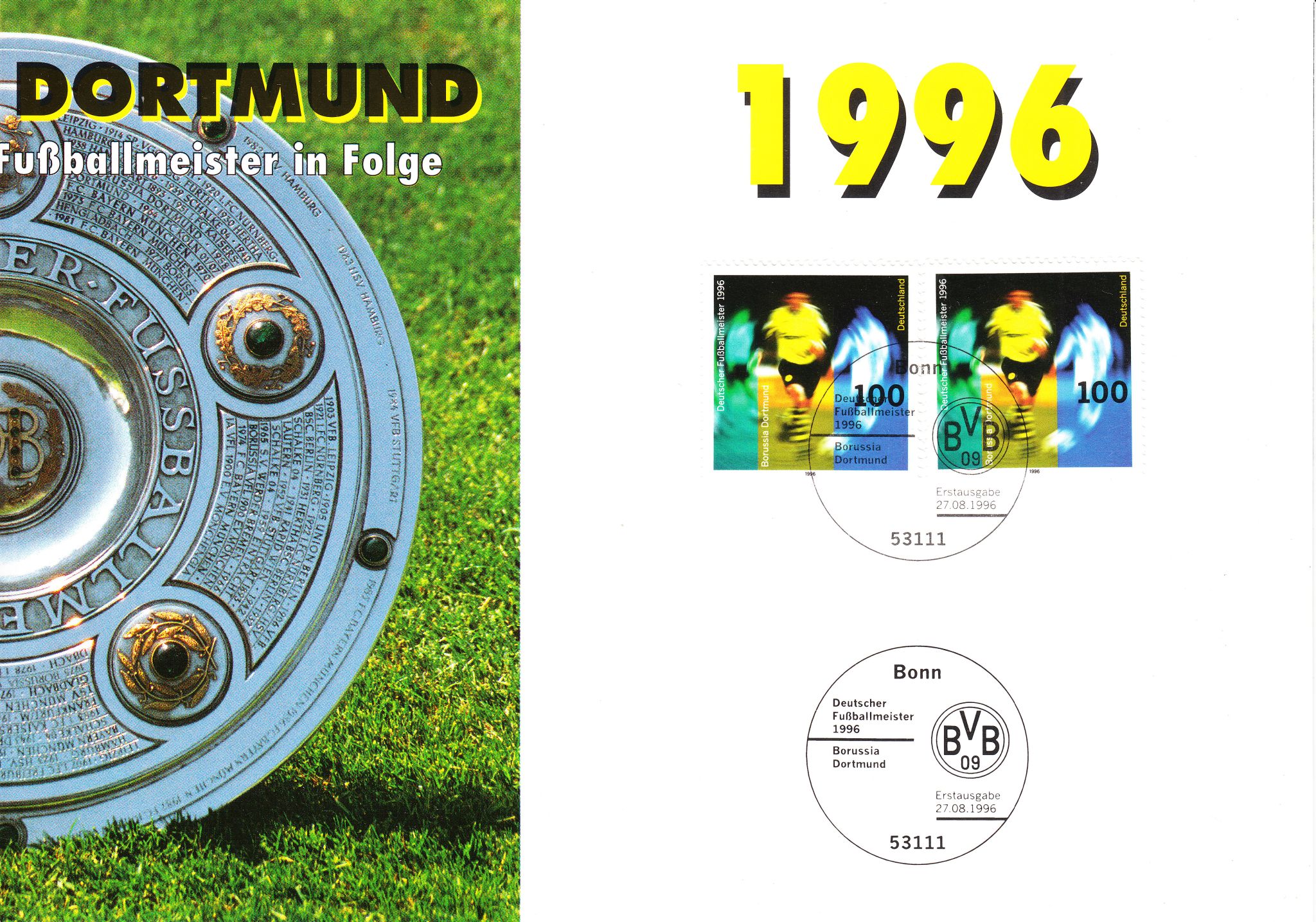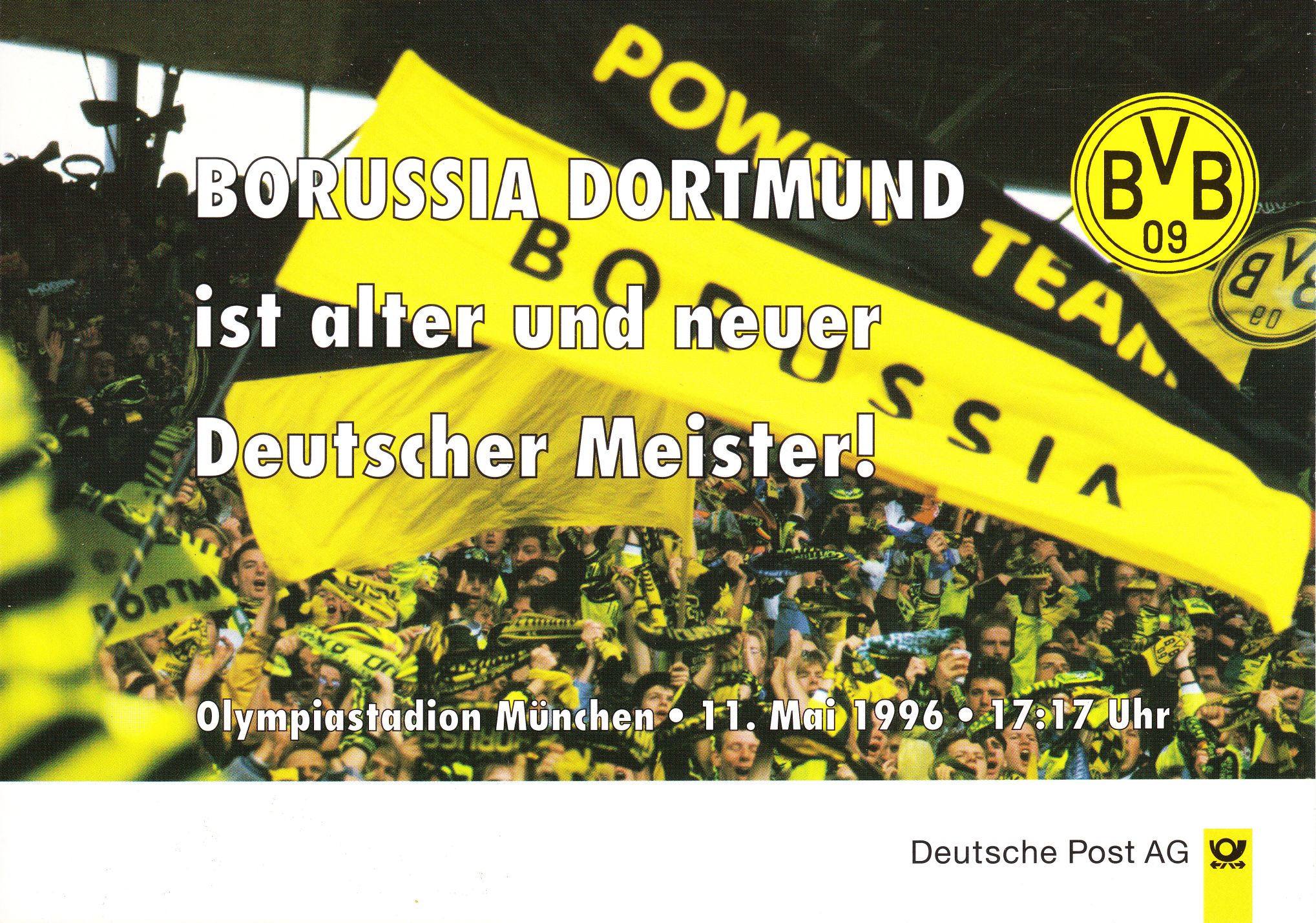 Zum zweifachen Deutschen Meistertitel in Folge legte die Deutsche Post AG 1996 diese Klappkarte auf, ein wahres Kleinod für jeden echten BVB-Fan:
