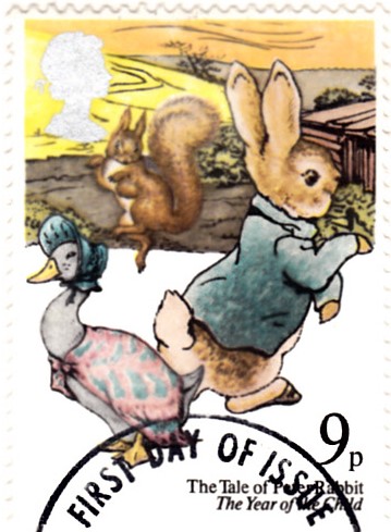 In Großbritannien erschien diese Marke (MiNr 797) mit einer Illustration aus "Die Geschichte von Peter Rabbit".