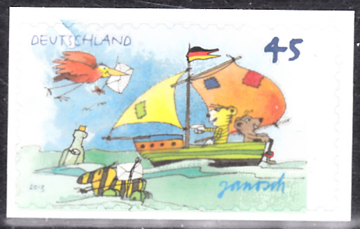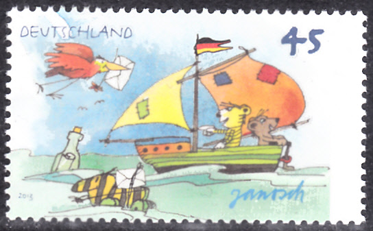 Bei der Deutschen Post ist diese Marke (MiNr 2992) mit der Zeichnung eines Segelbootes von Janosch erschienen.