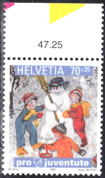 Auf einer Marke der Schweiz aus der Serie "Pro Juventute 1999" (MiNr 1701) ist eine Illustration aus dem Bilderbuch "Hinaus aufs Land" zu sehen.