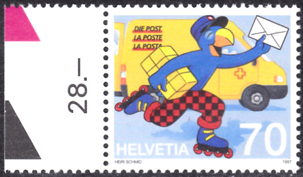 In der Schweiz ist1997 eine Marke (MiNr 1610) mit der Abbildung "Globi bei der Post" vom Einband des gleichnamigen Kinderbuches erschienen. Dies ist auch der Titel des Bandes 65 der Globi-Reihe.
