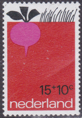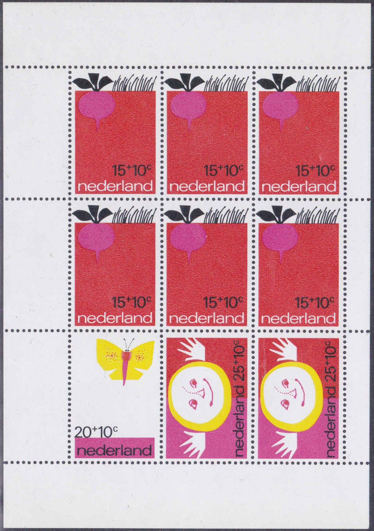 Hier zeige ich eine Marke (MiNr 969) aus der Serie "Vor het Kind" 1971 mit der KinderbuchiIIustration "Die Erde" von Babs van Wely.