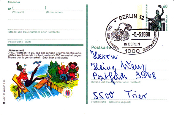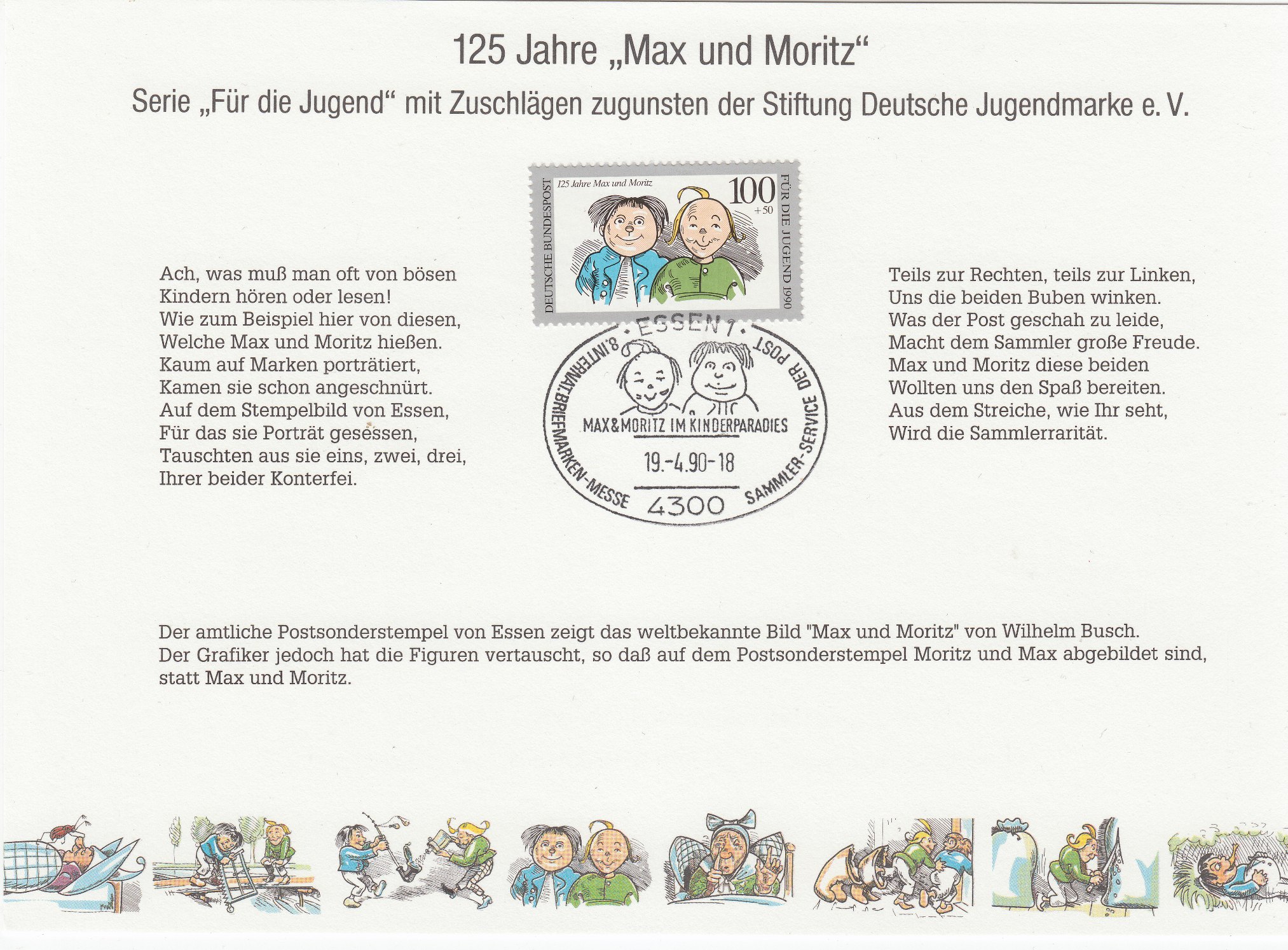 Trotzdem ist dem Grafiker, der den Handwerbestempel zu der 1990 erschienenen Briefmarke entworfen hat, diese deutliche Verwechslung der beiden bösen Buben passiert, kaum zu glauben, ist aber so, denn hier kommt der Beweis: