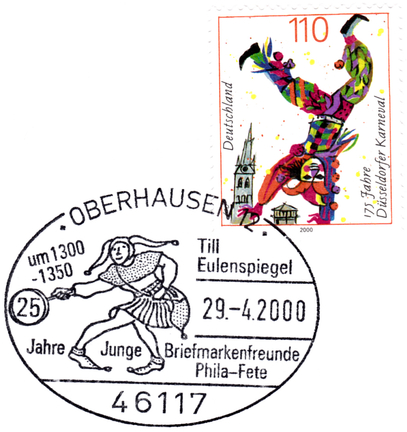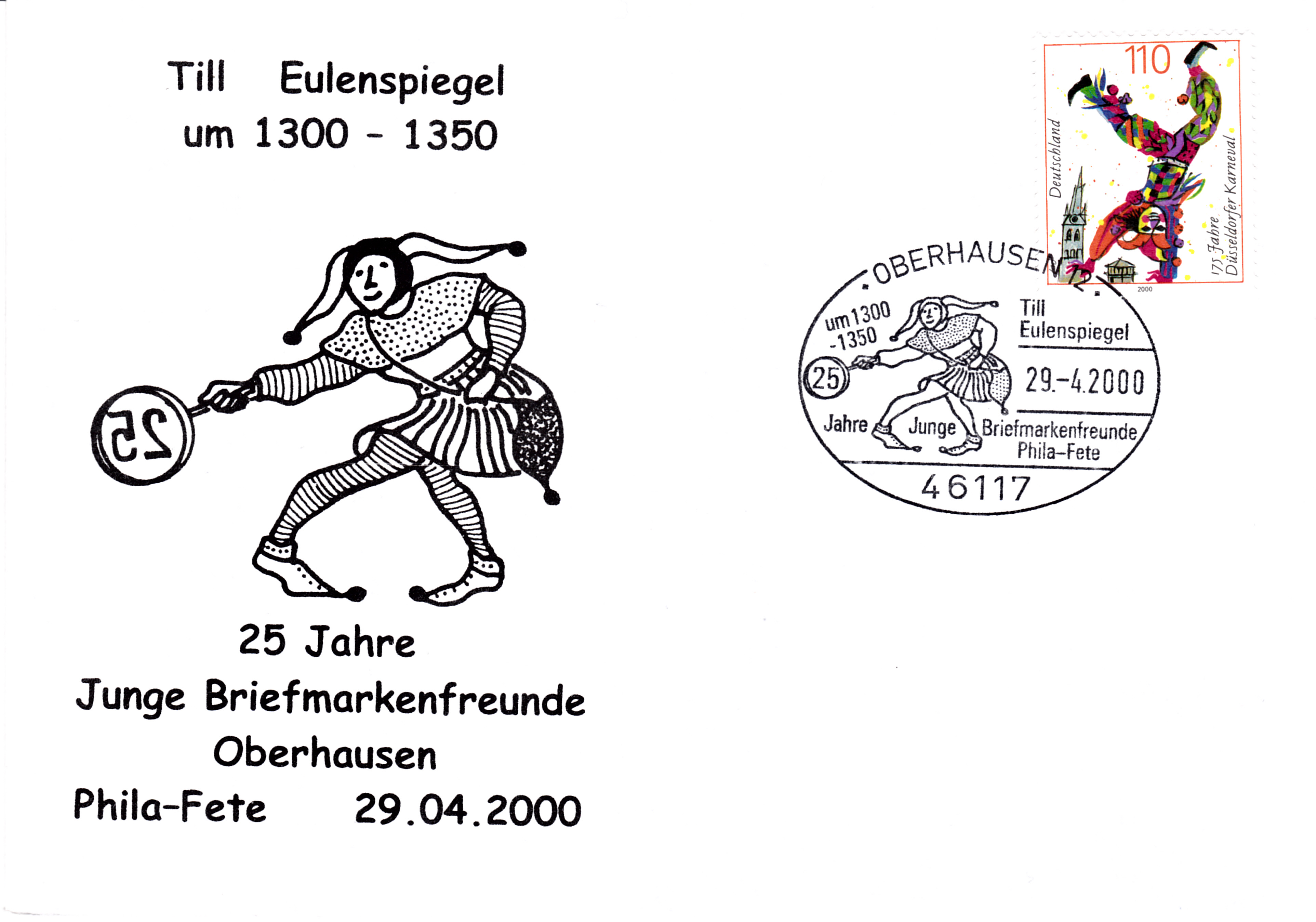 Sonderstempel vom 29.4.2000 aus Oberhausen mit Till Eulenspiegel im Stempelbild.
