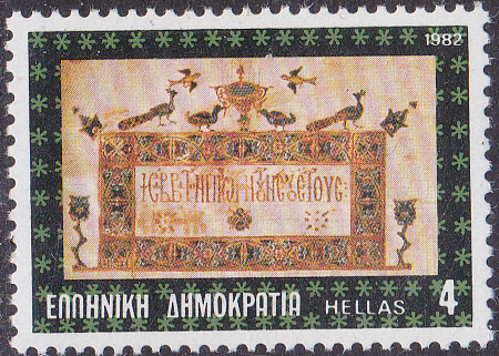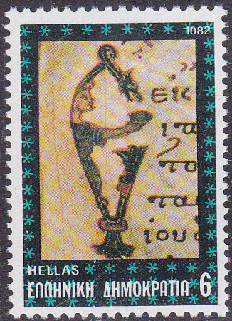 Aus einer Markenserie aus Griechenland kommt diese Marke (MiNr 1489) mit dem Titel eines Evangeliars (Evangelienbuch).