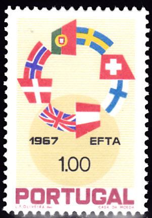 Zur Aufhebung der Zollschranken zwischen den EFTA-Ländern ist in Portugal eine Markenausgabe erschienen. Auf einer Marke zu 1,00 Escudo (MiNr 1043) wird ein Ring aus den Flaggen der EFTA-Länder gezeigt.
