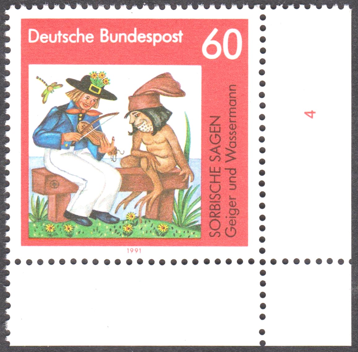 Eckrandstück unten rechts mit Formnummer "4", Bund MiNr. 1576, als Einzelfrankatur portogerecht auf Drucksache: