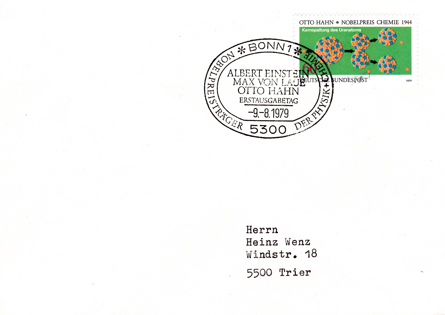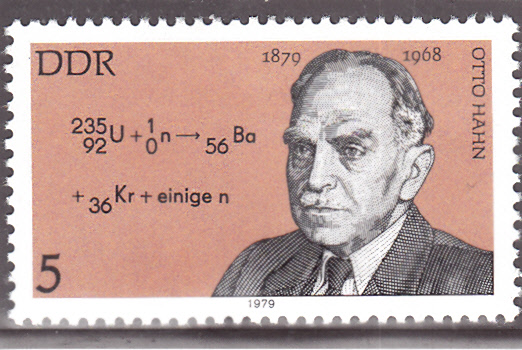 In einer Serie "Bedeutende Persönlichkeiten" ist in der DDR diese Marke (MiNr 2406) mit seinem Porträt und einer Formel der Kernspaltung von Atomen erschienen.