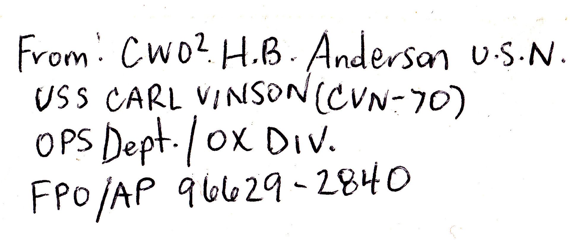 Einer dieser Flugzeugträger ist die USS CARL VINSON (CVN-70). Hier ein Bedarfsbrief: