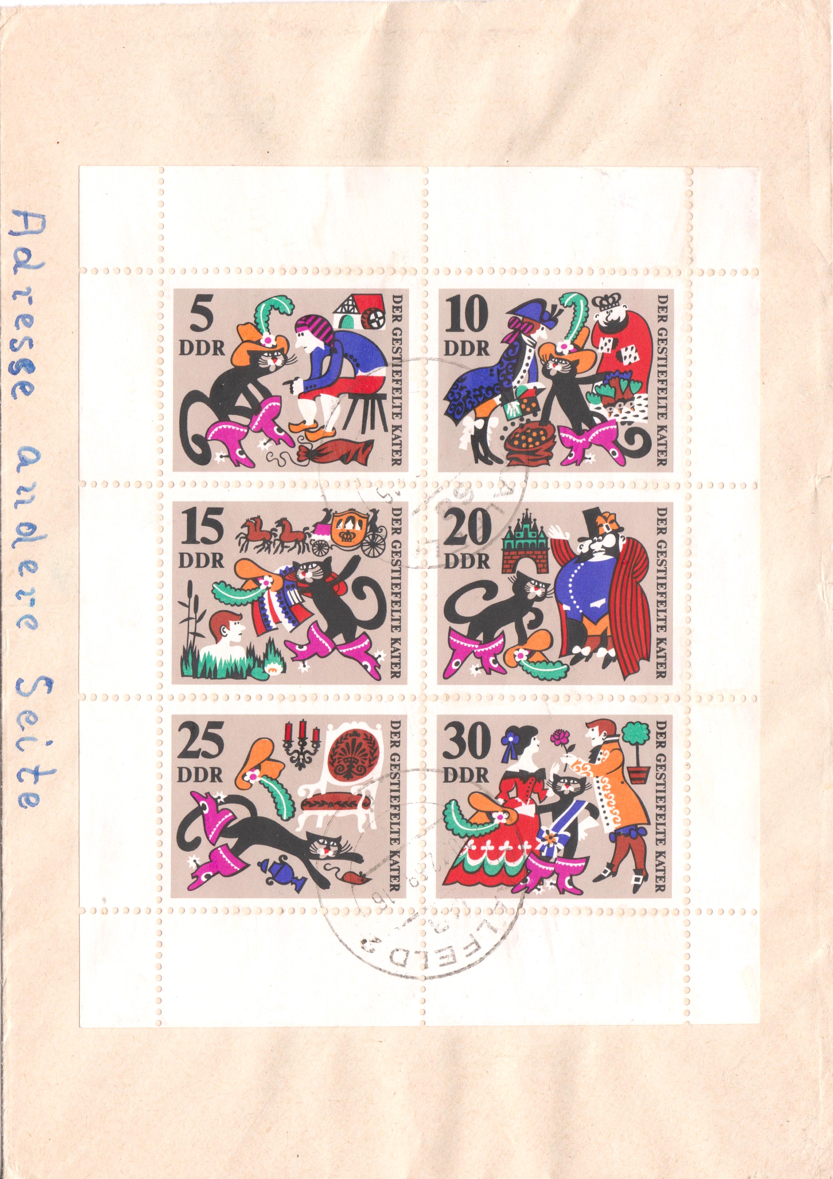 Hier wurde der Zusammendruck DDR MiNr. 1426 bis MiNr. 1431 als Frankatur rückseitig auf einem eingeschriebenen Brief verklebt:
