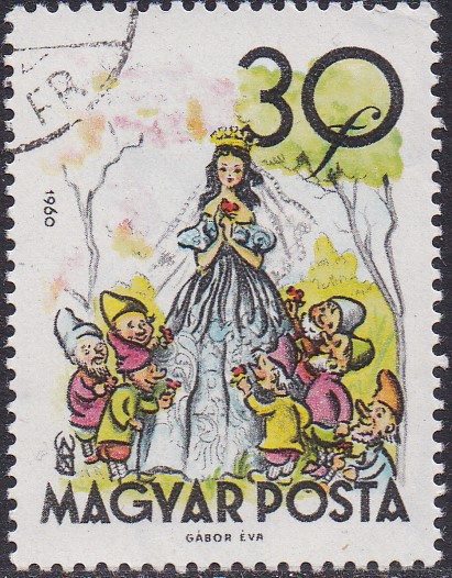 Diese Marke aus Ungarn (MiNr 1719) zeigt uns auch Schneewittchen mit den sieben Zwergen.
