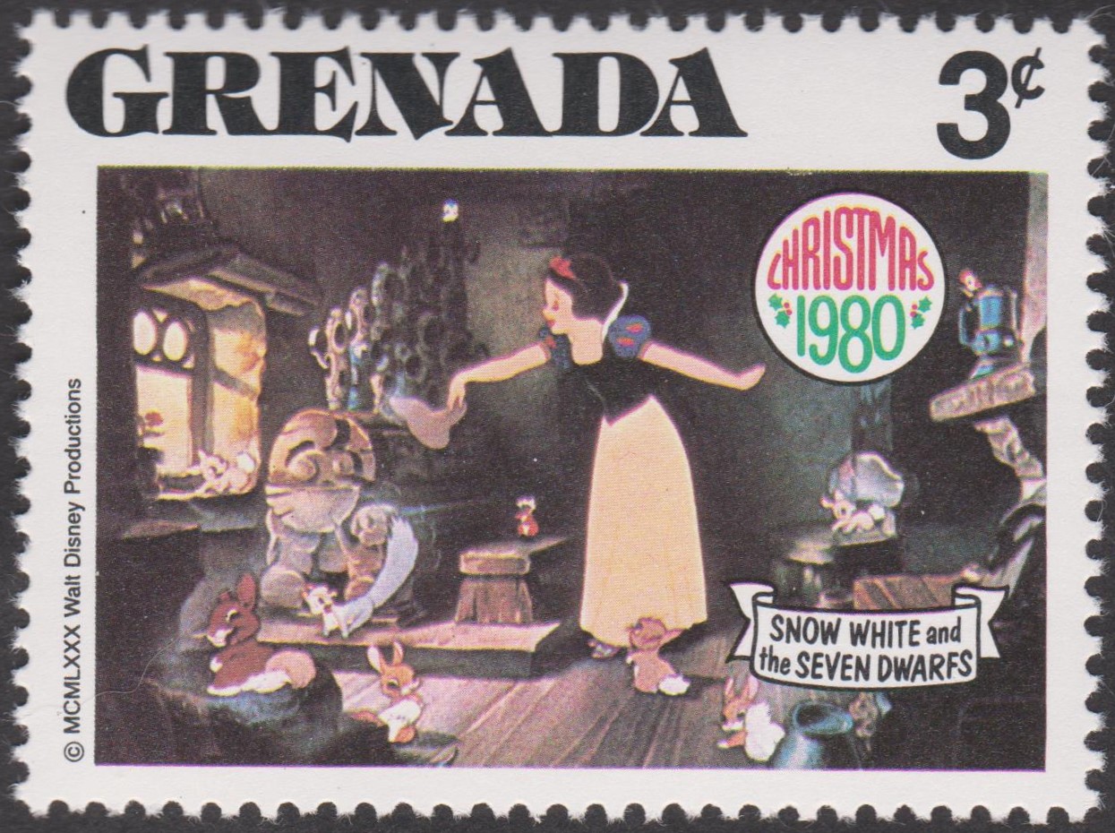 Zu Weihnachten 1980 erschienen diese Postwertzeichen zum Thema Schneewittchen, katalogisiert als Grenada MiNr. 1066 bis 1075: