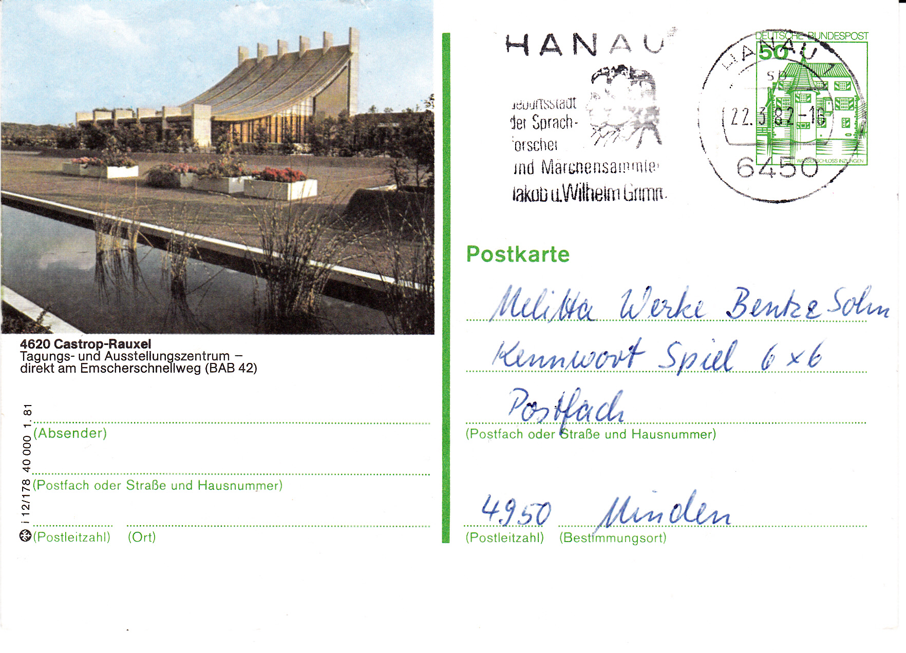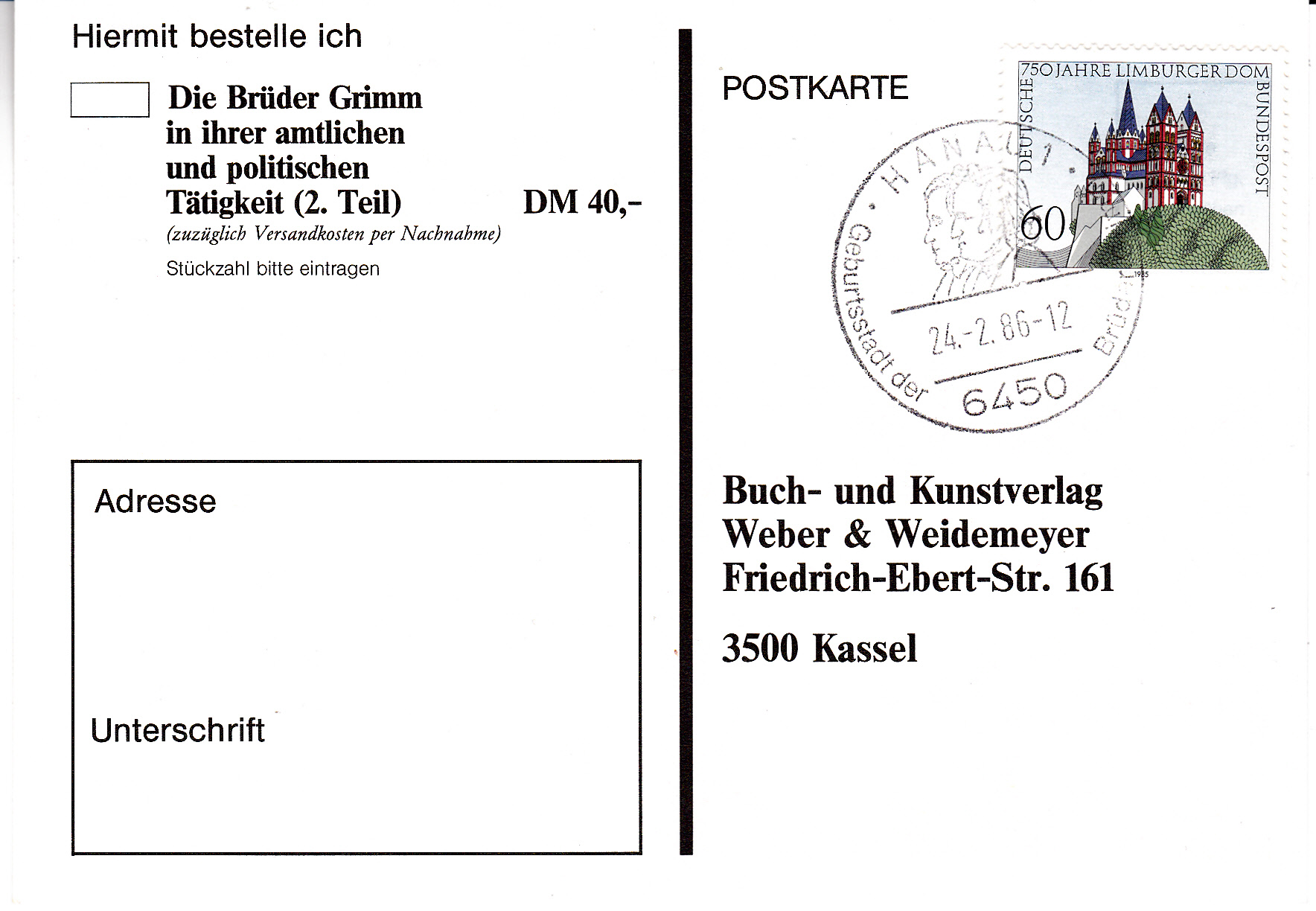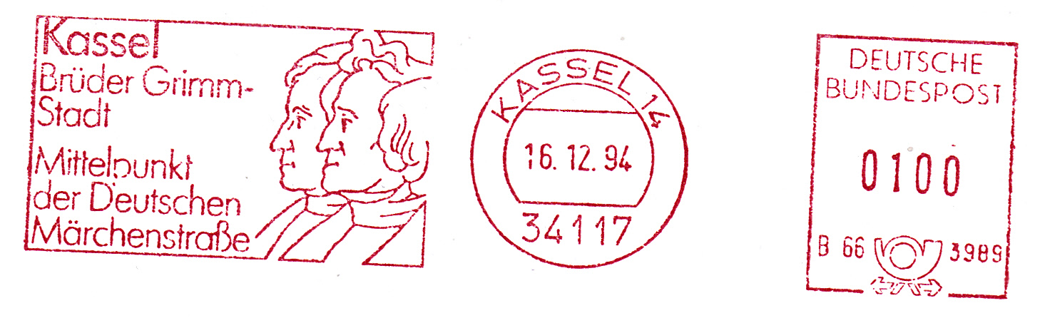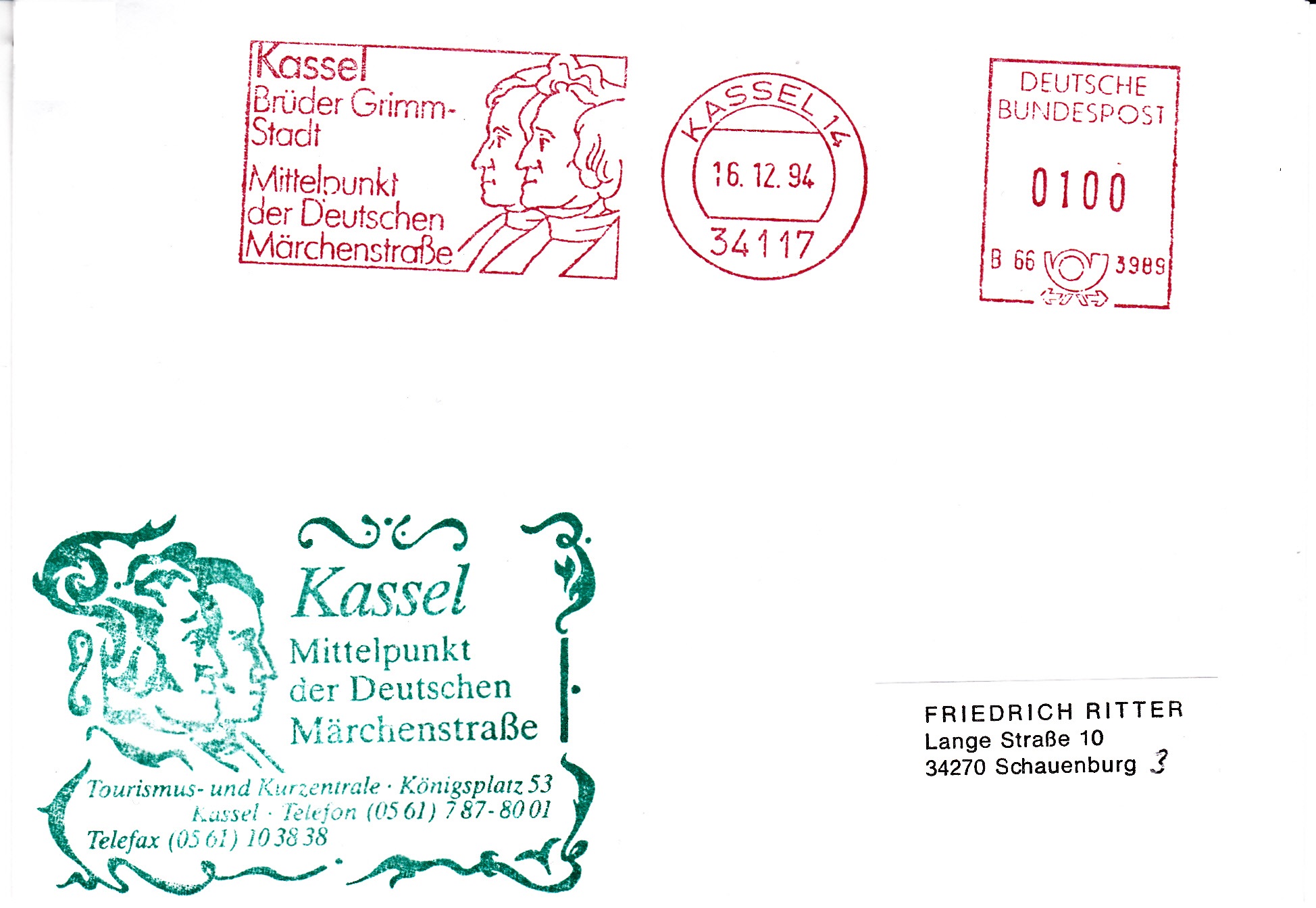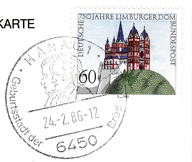 Somit ist der Absenderfreistempel der Stadt Hanau mit den beiden Sprachforschern