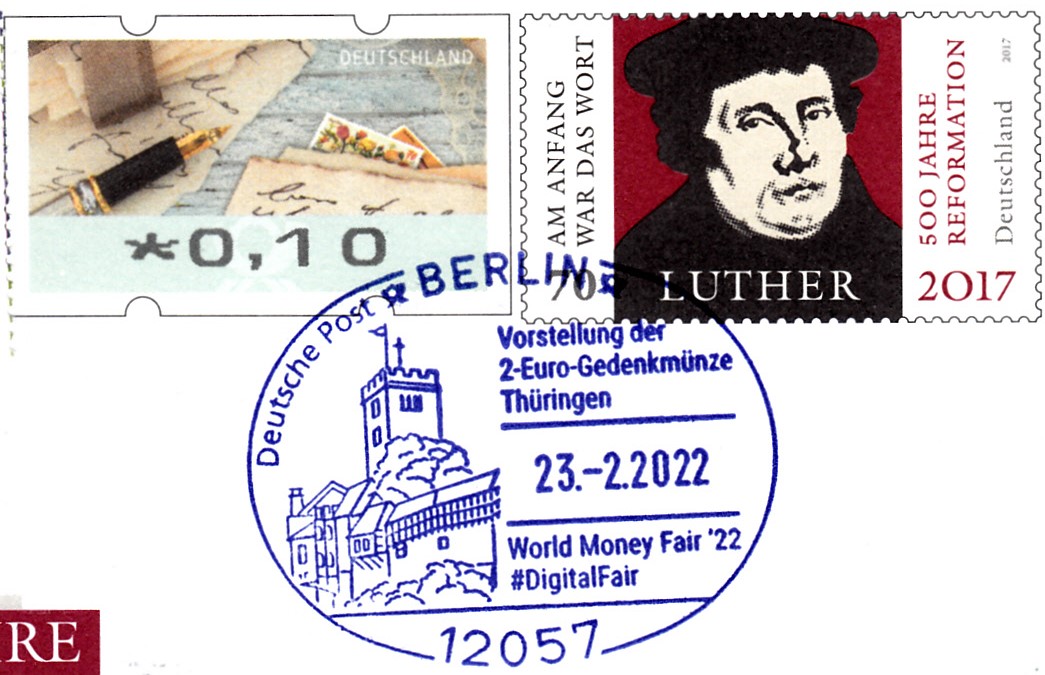 Aus Anlass "25 Jahre UNESCO Welterbe erschien bei der Deutschen Post eine Gedenk-Ganzsache mit dem Wertstempel im Muster der Europamarke 2017 (MiNr 3310) mit der Wartburg und einer Automatenmarke zu 0,15€..
