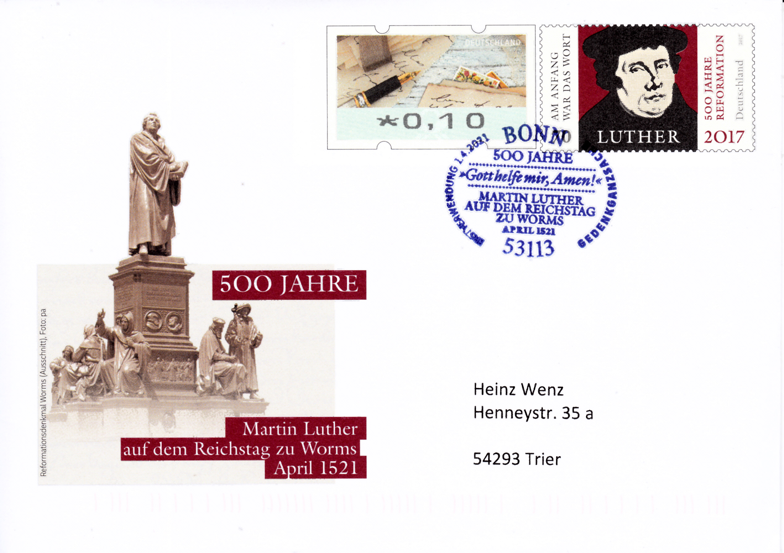 Auf Feld 6 befindet sich der bei einer Teilauflage des Zehnerbogens ohne Bogenzähler vorkommende Plattenfehler MiNr. 2755 I = "L" von "Luther" innen rechts eingekerbt: